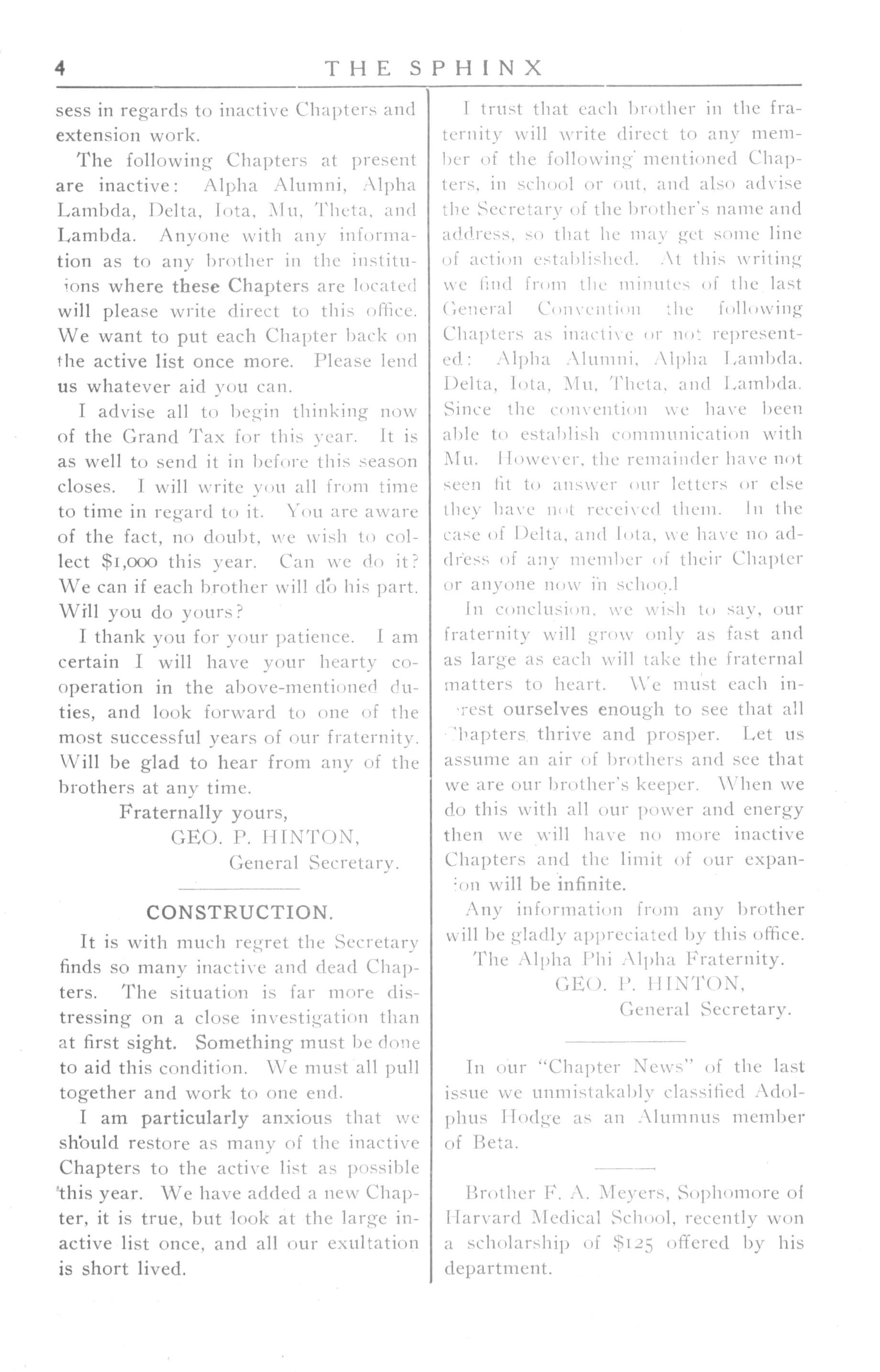 The Alpha PhiAlpha Fraternity GEO I' HINTON, General Secretary