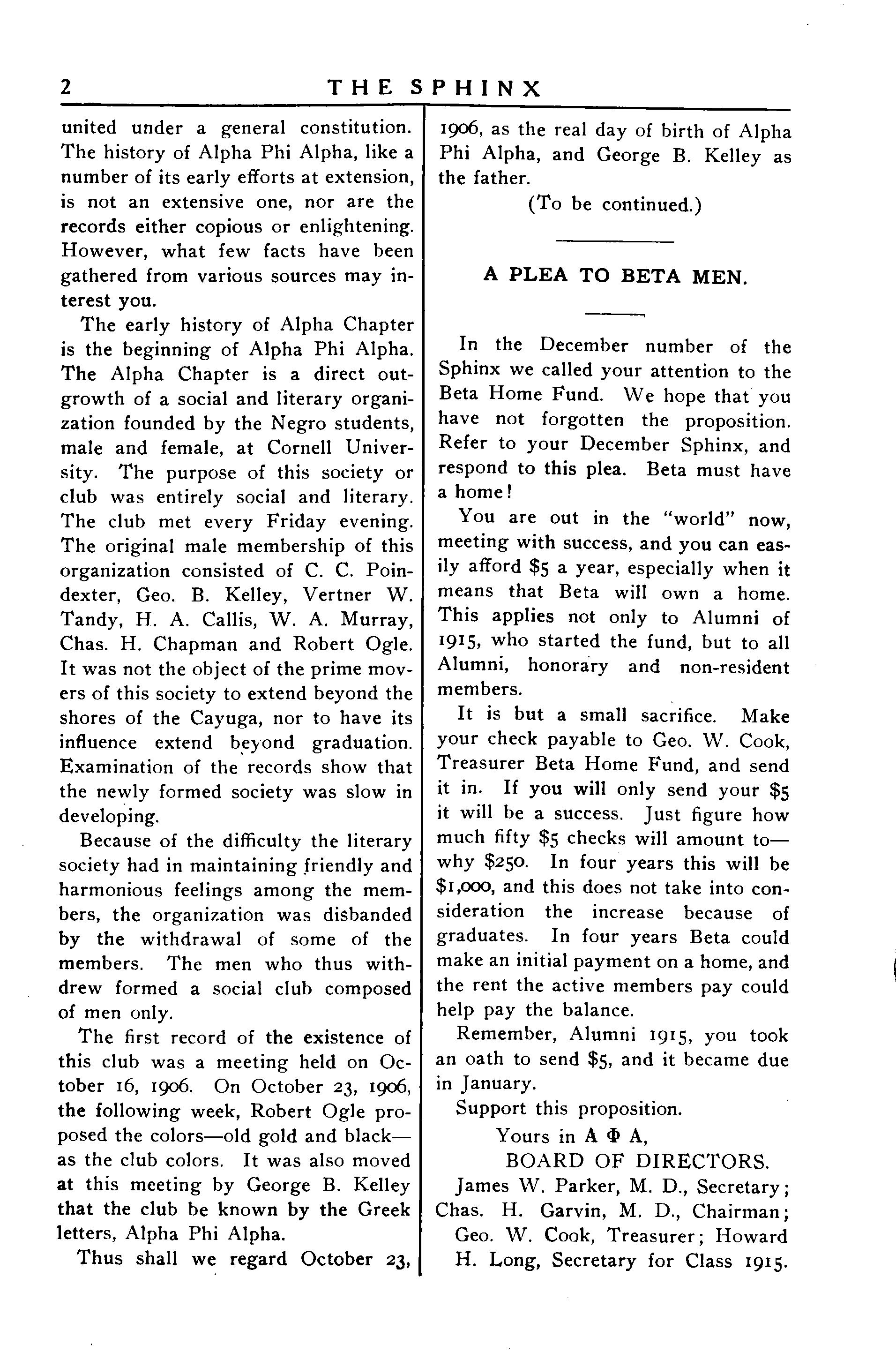 In the December number of the Sphinxwecalledyourattention to the Beta Home Fund We hopethat you have not forgotten the proposition. Refer to your December Sphinx, and respond tothisplea. Beta must have ahome!
