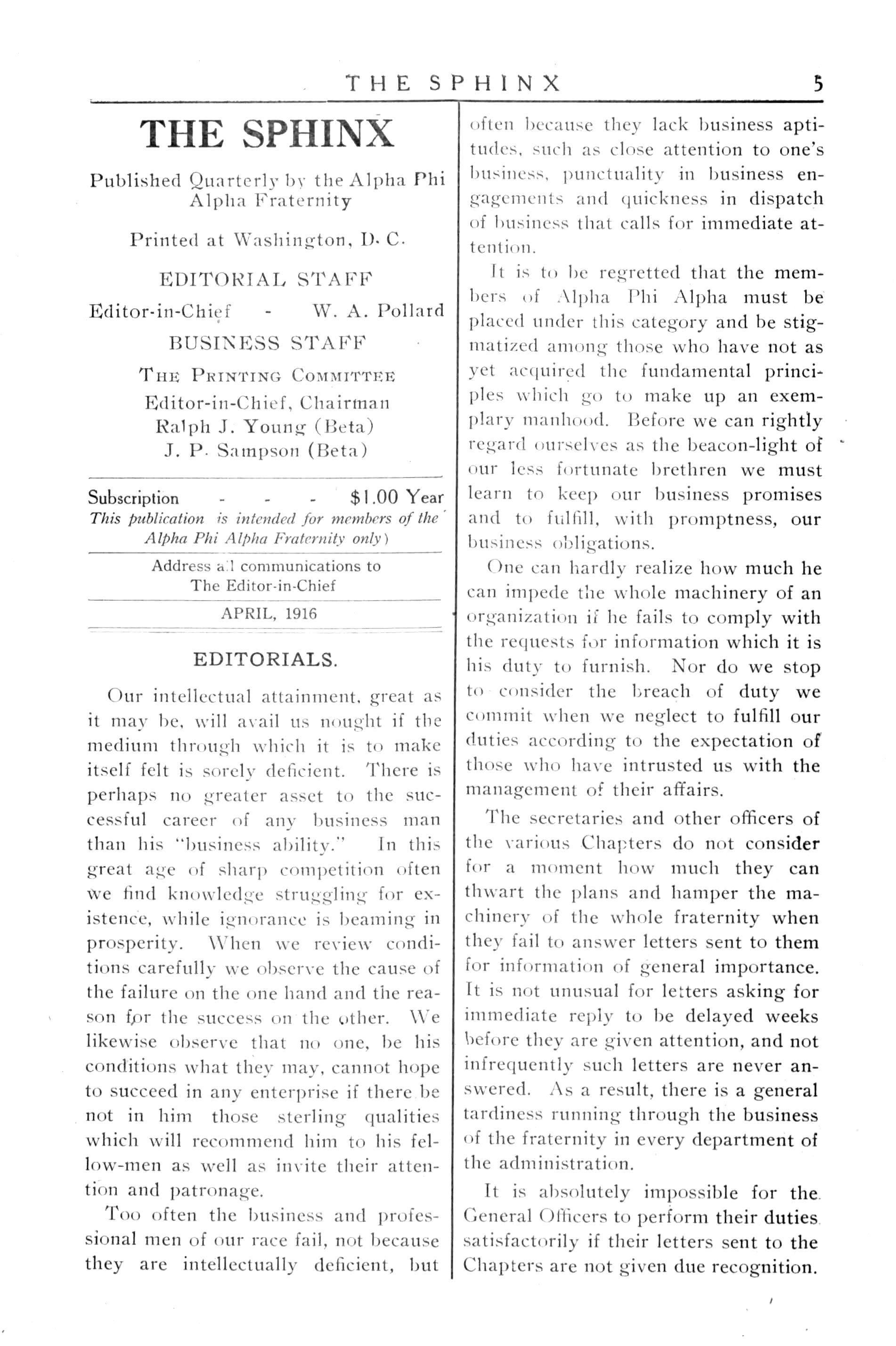 Published Quarterly by the Alpha Phi Alpha Fraternity