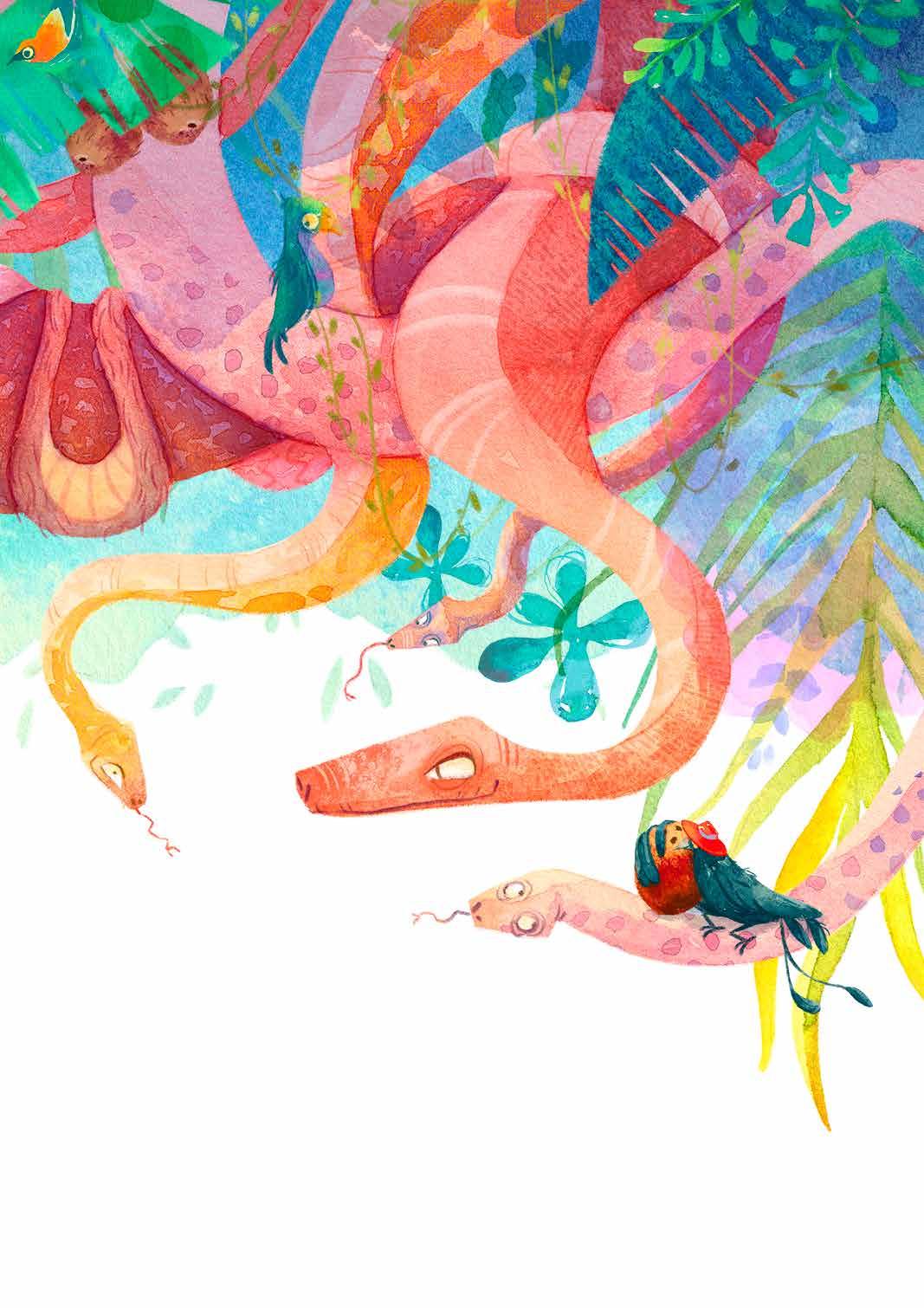 In prima e quarta di copertina: illustrazione della diplomata Master Monica Garofalo, da "Passatempi nella giungla” progetto tesi per Emme Edizioni.