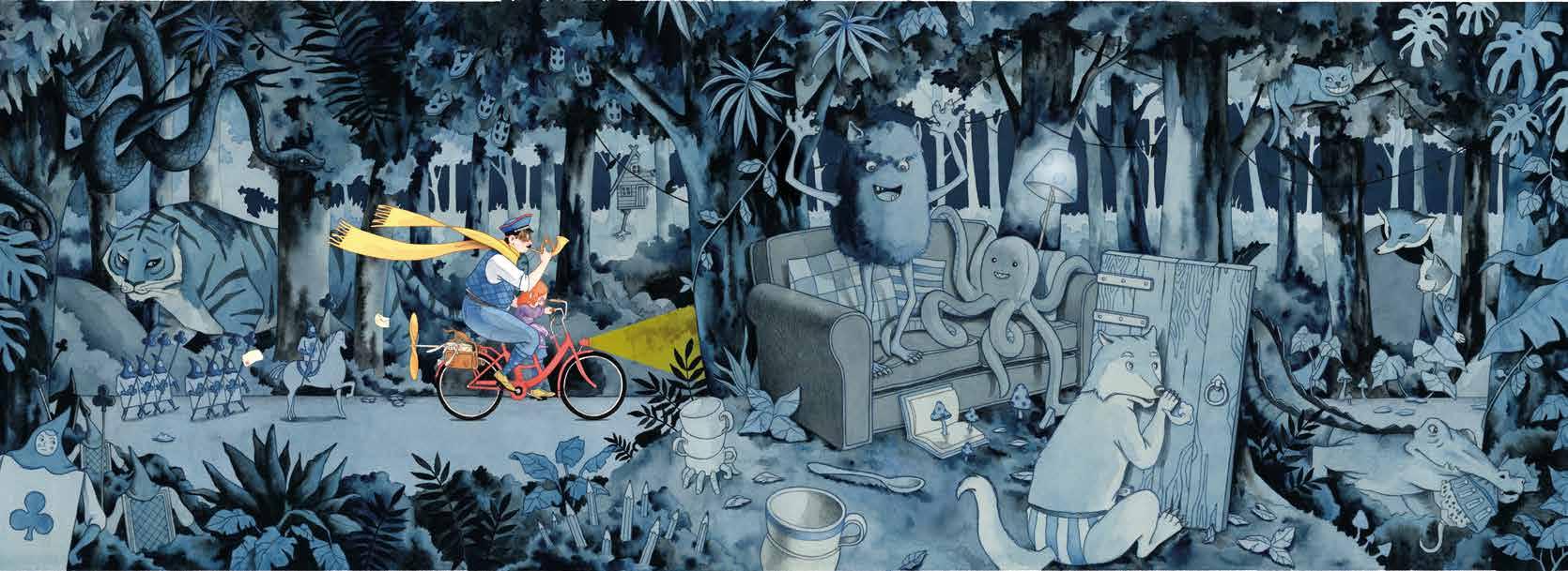 A fianco: illustrazione della diplomata Master Yalan Xu da "In bocca al lupo" progetto tesi per ZOOlibri.