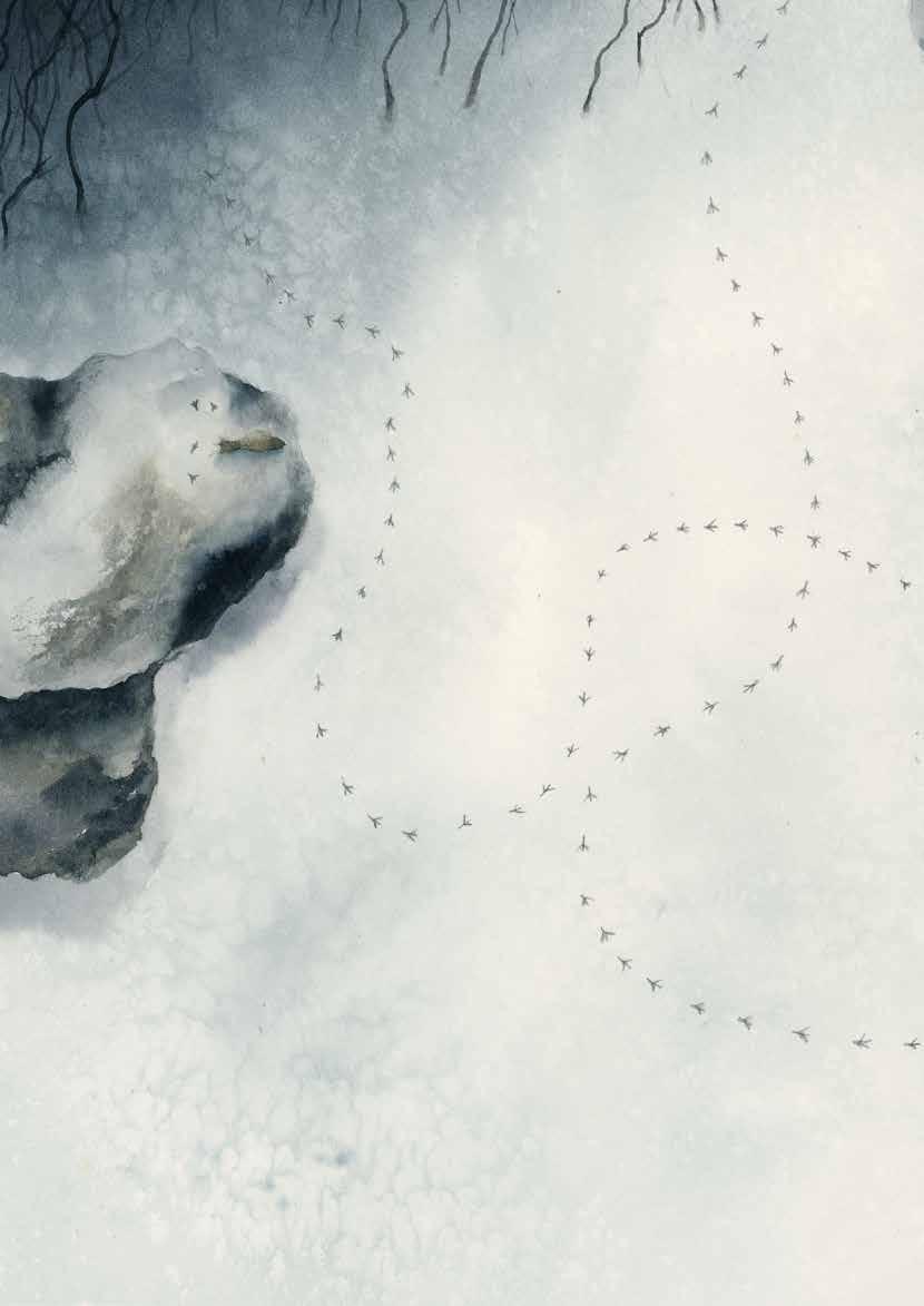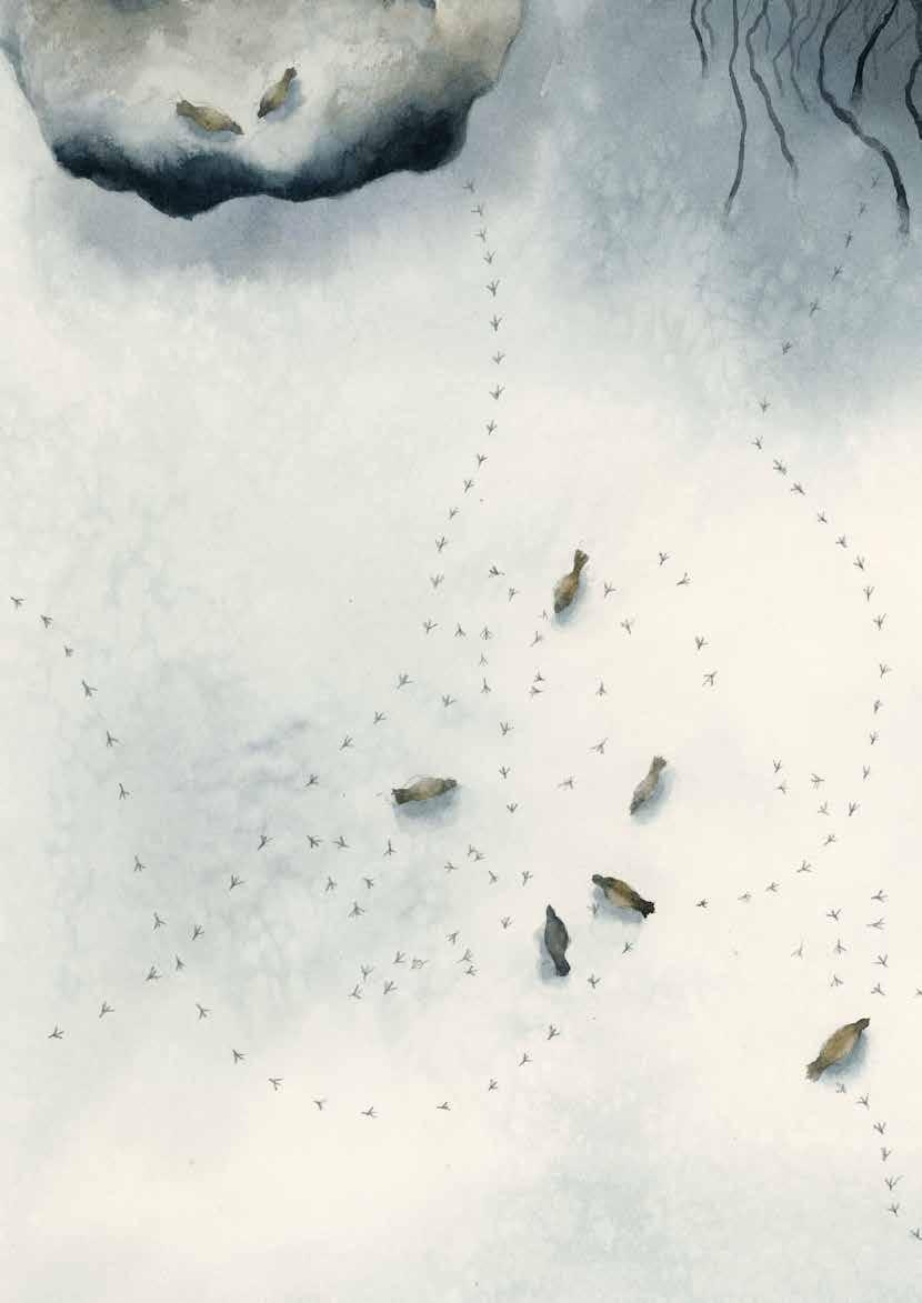 Illustrazione della diplomata Master Marina Di Meglio da "Una foglia come un foglio", progetto tesi in uscita con Pulce Edizioni.