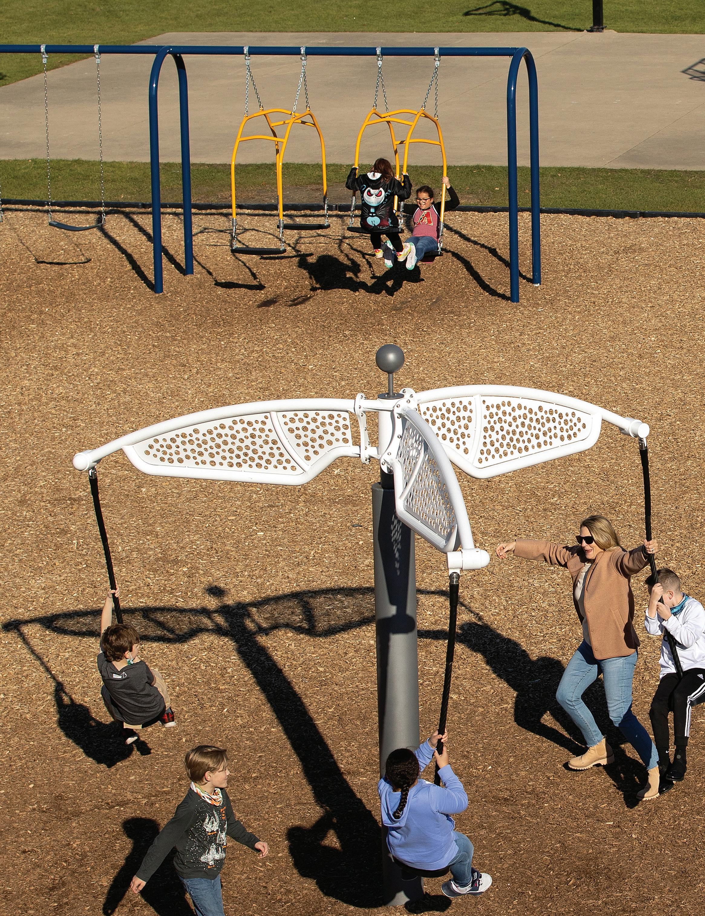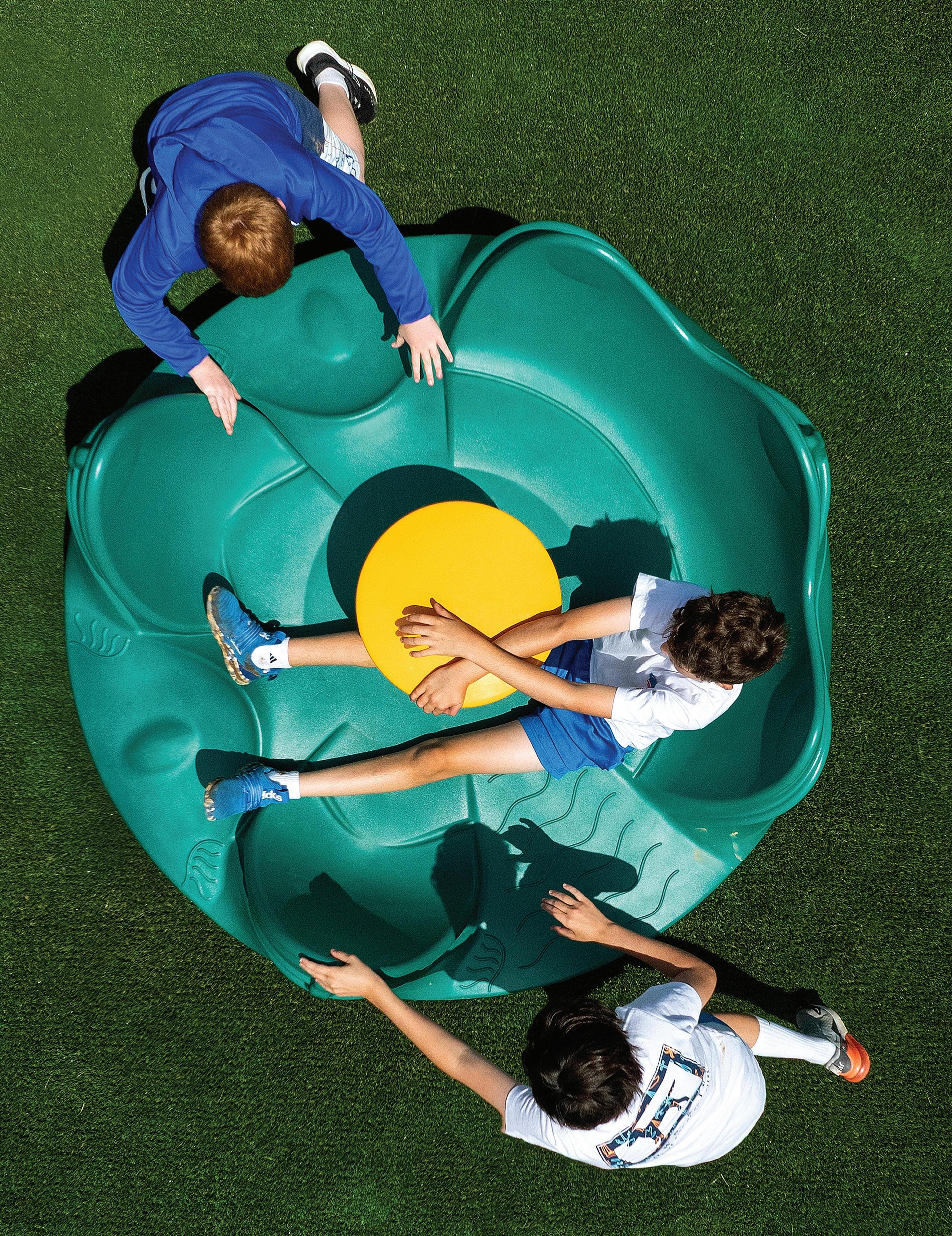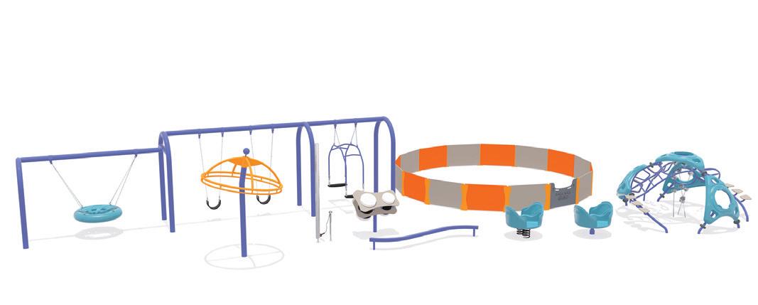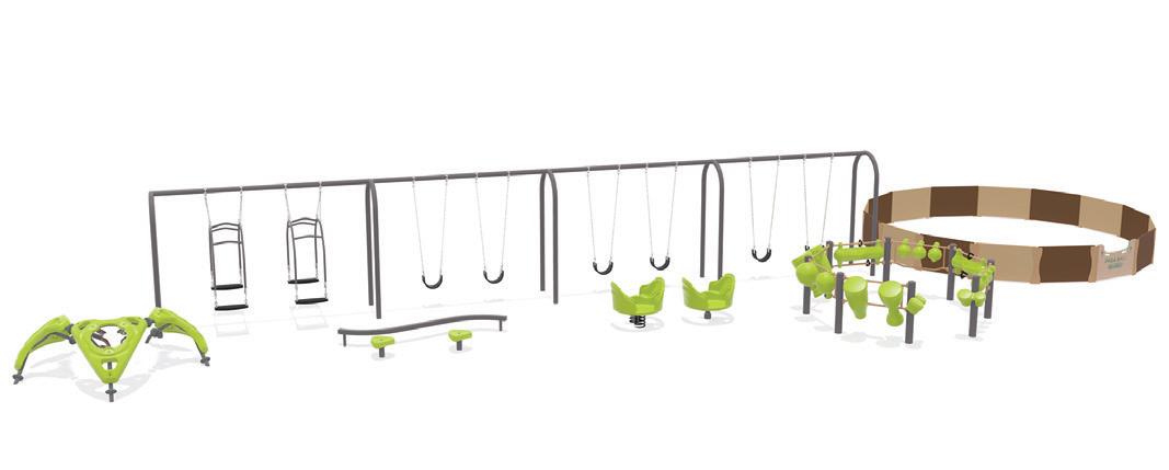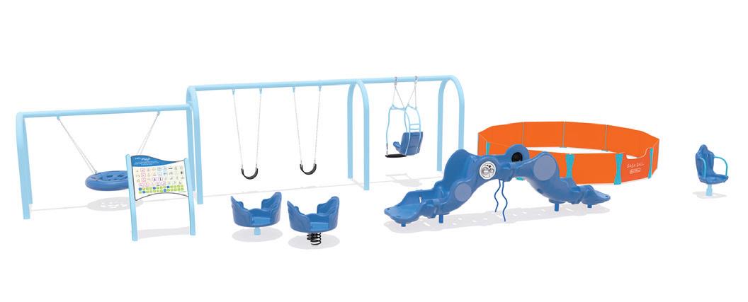 This playful space encourages children to explore a variety of sensory-rich features and freestanding motion and movement activities. These elements facilitate cooperative play and support motor planning and development to help children of all abilities comprehend and discover the world around them.