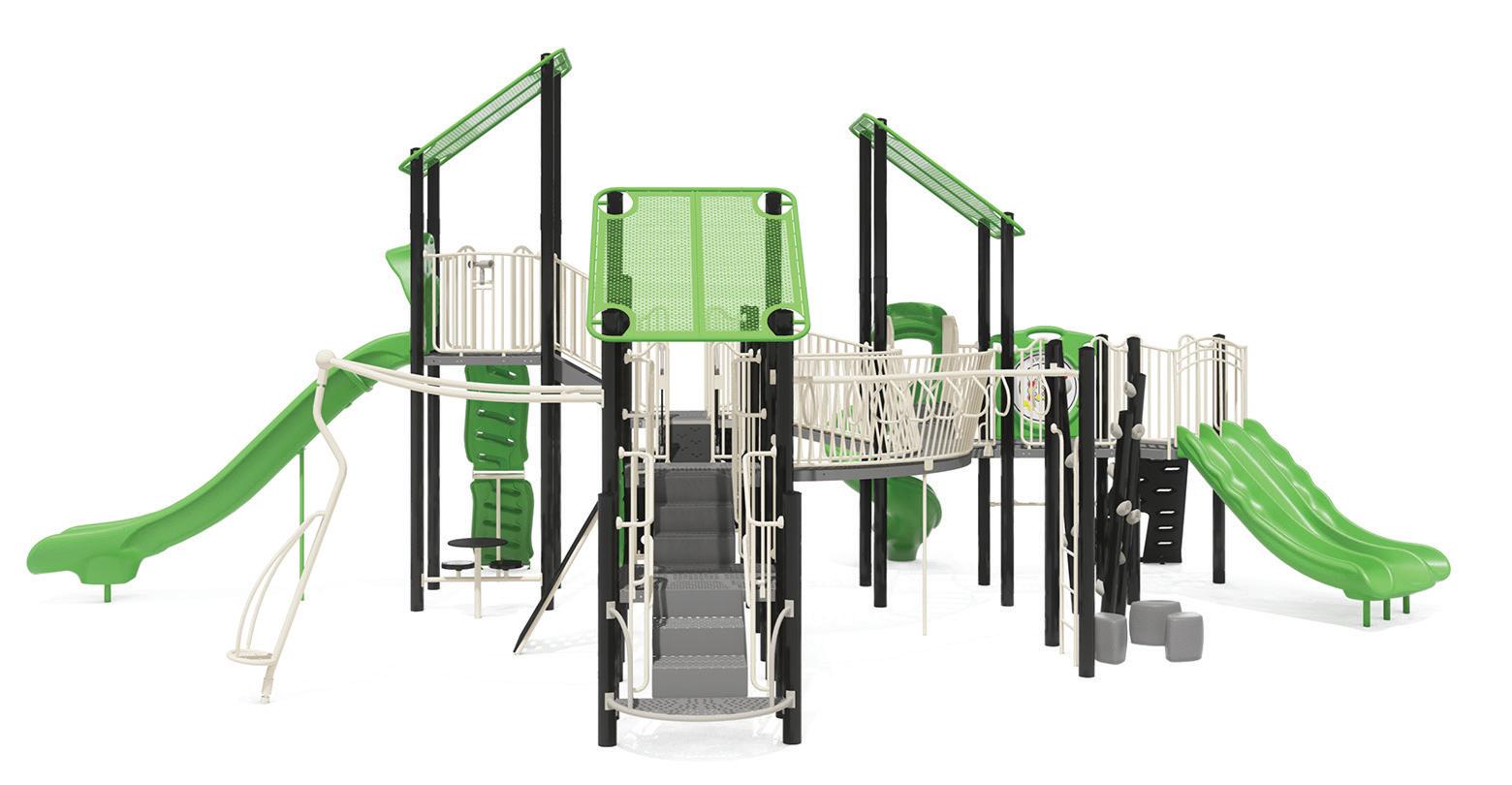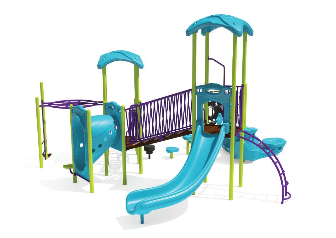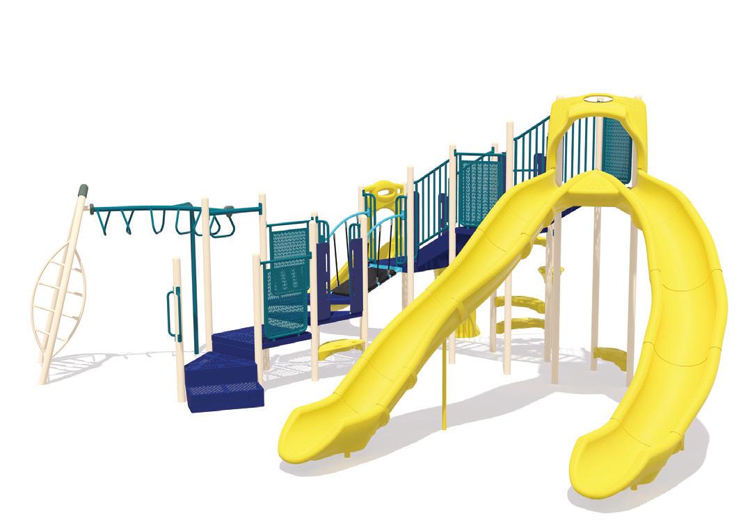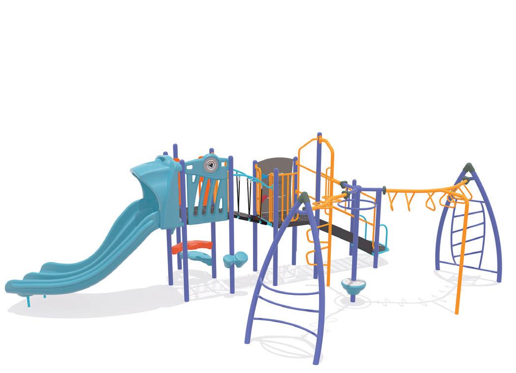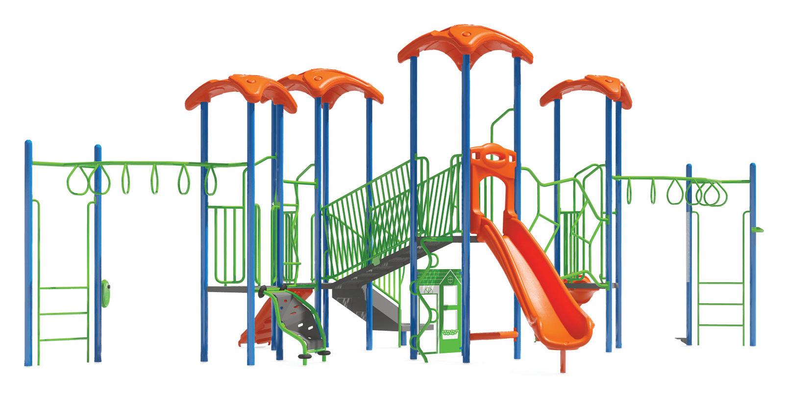 Every school deserves a great place to play. This playground is designed specifically for schools looking to maximize their budget, delivering lots of physical activity without compromising on fun. Freestanding play experiences, such as the Sensory Dome and Duo Spinner, are placed near the central system, creating fun, social play experiences students love.