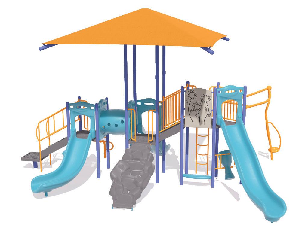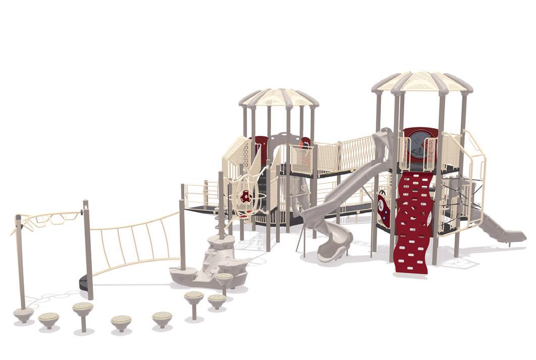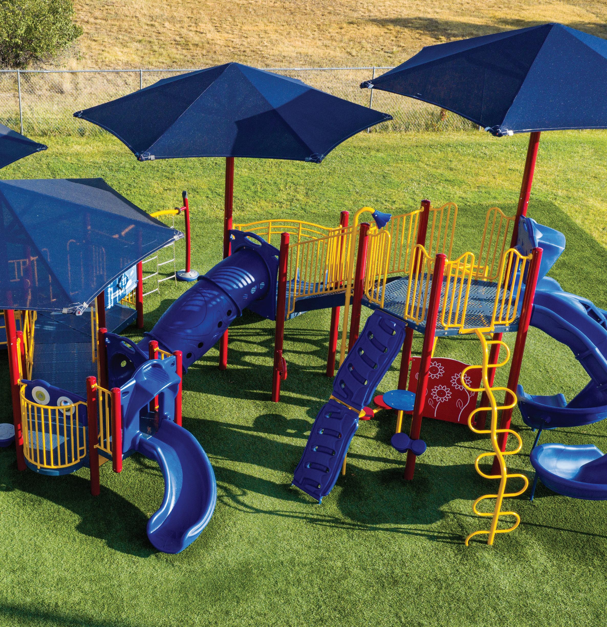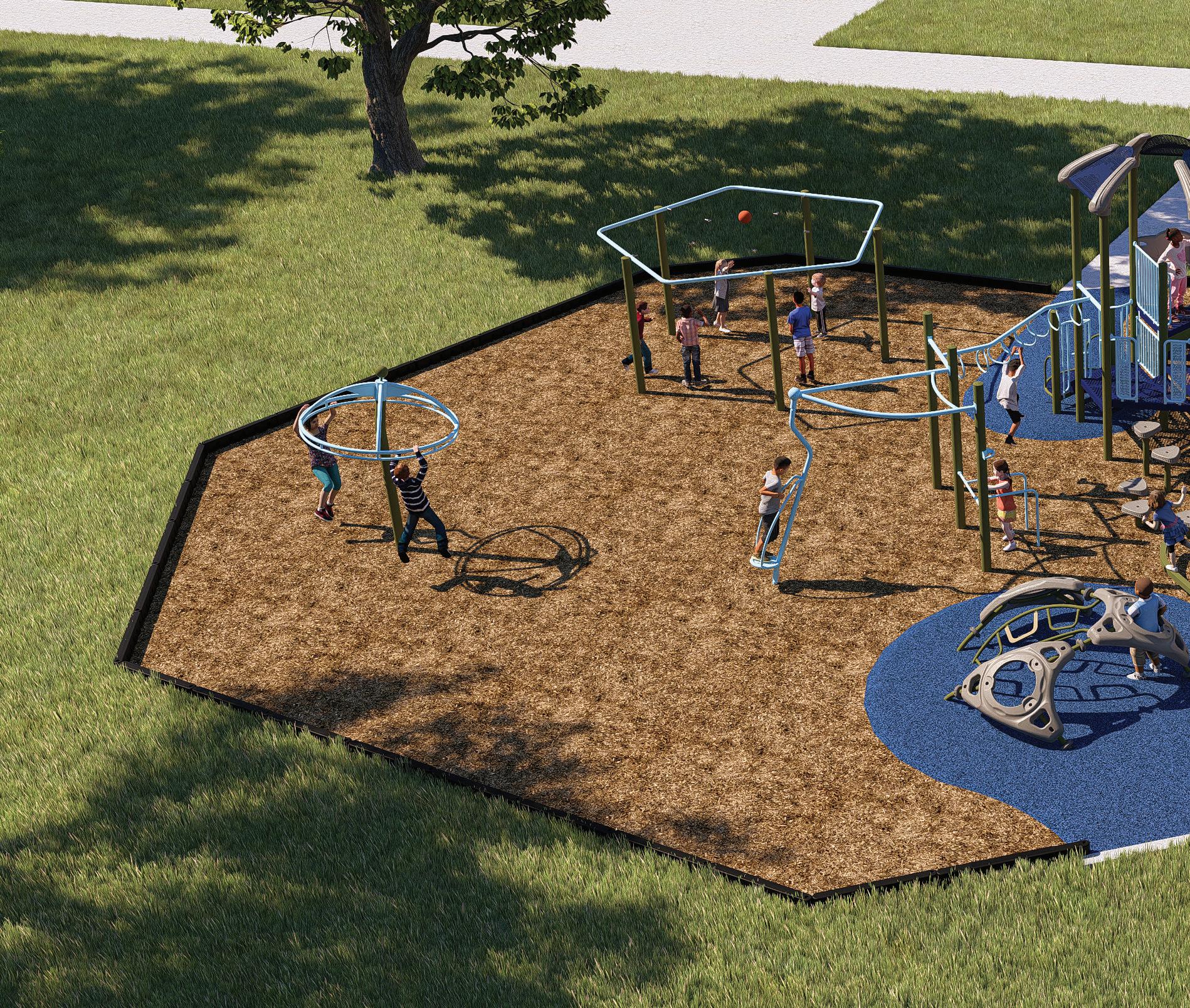 Every school deserves a great place to play. This playground is designed specifically for schools looking to maximize their budget, delivering lots of physical activity without compromising on fun. Freestanding play experiences, such as the Sensory Dome and Duo Spinner, are placed near the central system, creating fun, social play experiences students love.