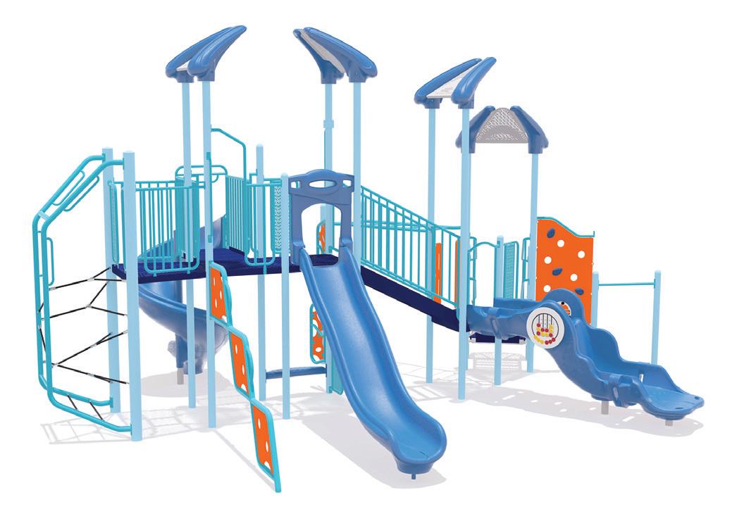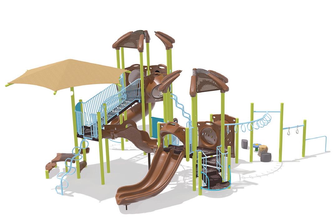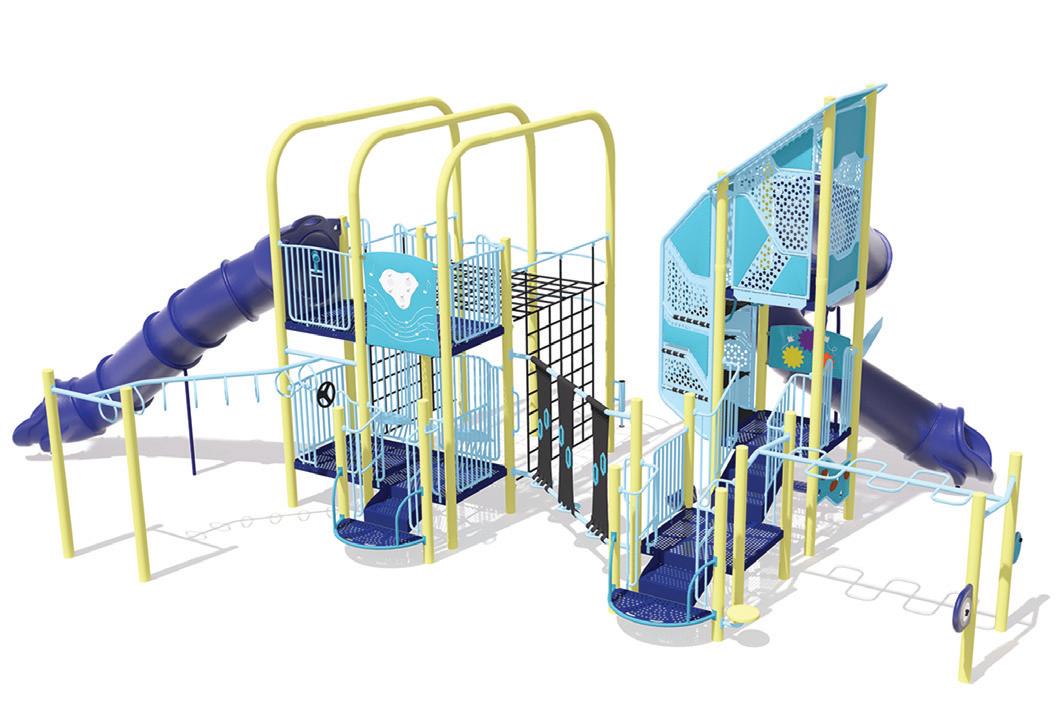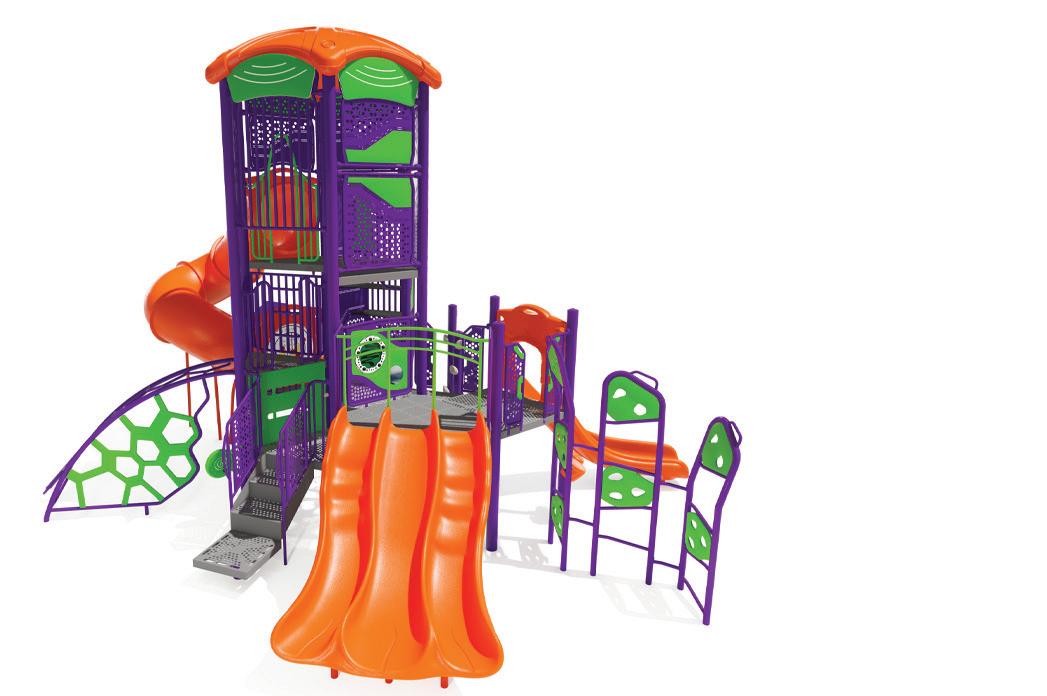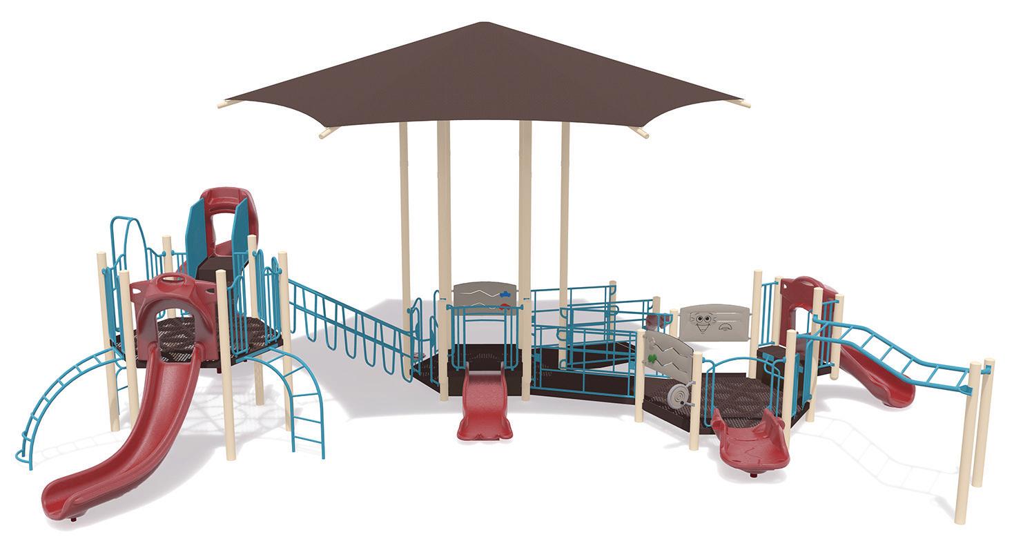 Every school deserves a great place to play. This playground is designed specifically for schools looking to maximize their budget, delivering lots of physical activity without compromising on fun. Freestanding play experiences, such as the Sensory Dome and Duo Spinner, are placed near the central system, creating fun, social play experiences students love.