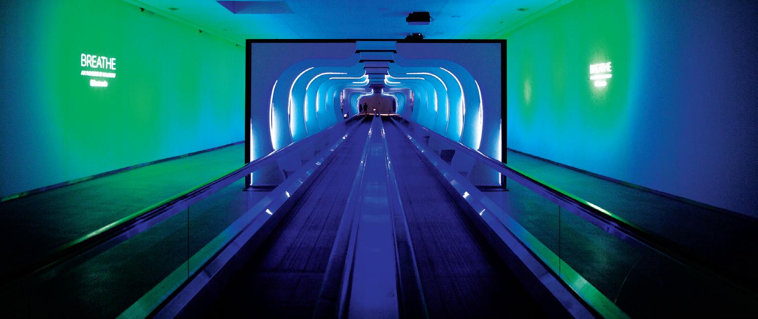 Entitled 'Breathe', the installation is inspired by the rhythm of breathing and the way the body moves through space. Light, sound and digital visuals rise and fall in a steady flow, echoing inhale and exhale, gently recalibrating attention as visitors move through. According to Instronic, the space does not ask people to stop or look, but to pass through differently, turning movement into the experience.