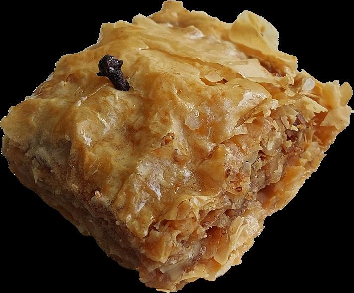 Crispy filo layered with honey and walnuts. While supplies last.