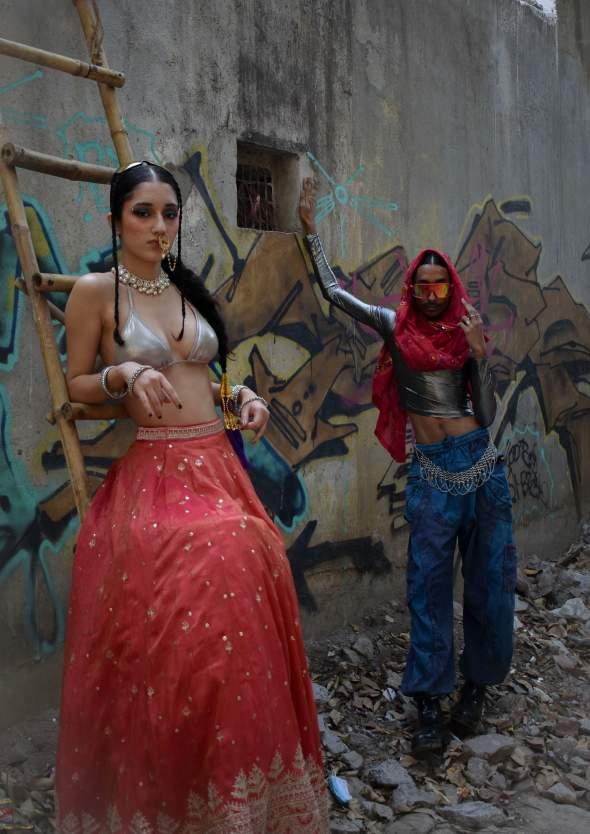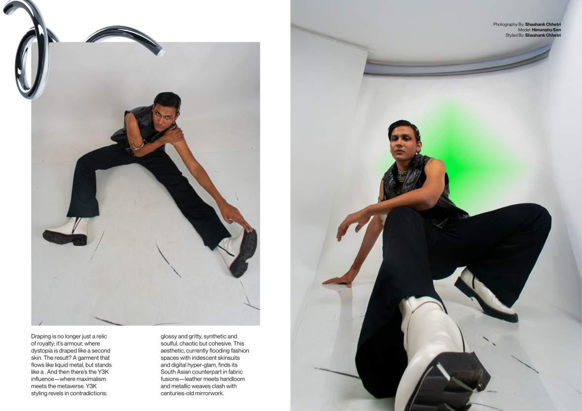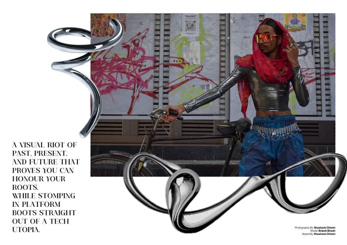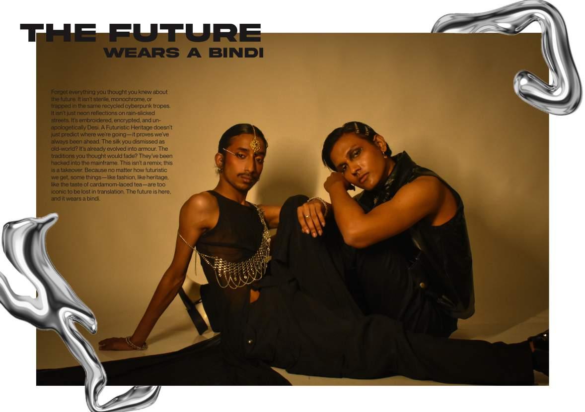 Enter the rebellion. A Futuristic Heritage takes the brutalist silhouettes of Rick Owens, the punk engineering of Junya Watanabe, and the glitchy, iridescent energy of Y3K aesthetics and feeds them through a South Asian filter.