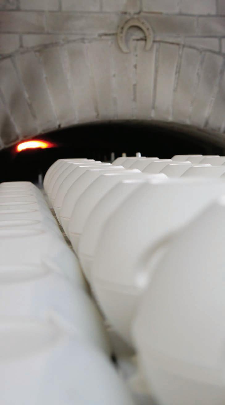Fruto de una cuidadosa selección y mezcla de materias primas —feldespato, arena, arcilla y caolín—, la porcelana se somete a un proceso de cocción doble a 1400 °C, en atmósfera controlada.