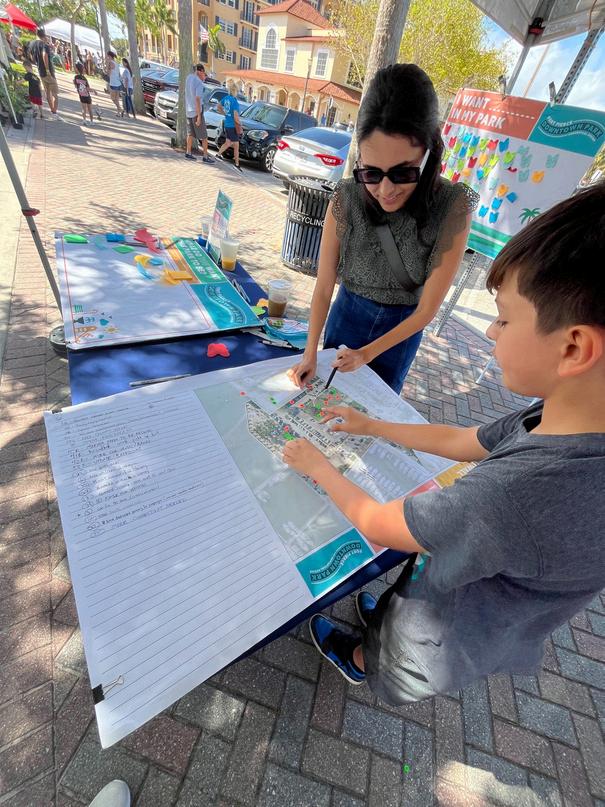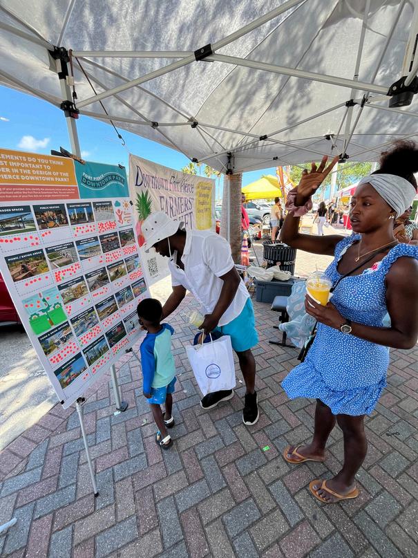 In February 2025, the FPRA entered into a Specific Authorization with Inspire Placemaking Collective to begin the conceptual design for Marina Park. On April 5, we hosted our first public engagement event at the Saturday Farmers Market and received fantastic feedback from both residents and visitors. A special highlight was seeing young children interact with the Elements Board, picking out the features they’d love to see downtown proof that this space is truly being shaped by all generations.