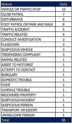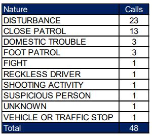 During the month of March 2025, there were a total of 17 FPRA details worked for the North 25th area from Avenue O to Avenue M There were 48 calls for service during the detail times Disturbances were the top reasons for the calls.