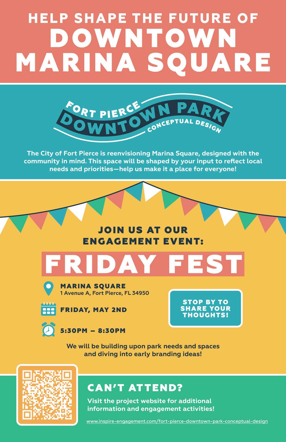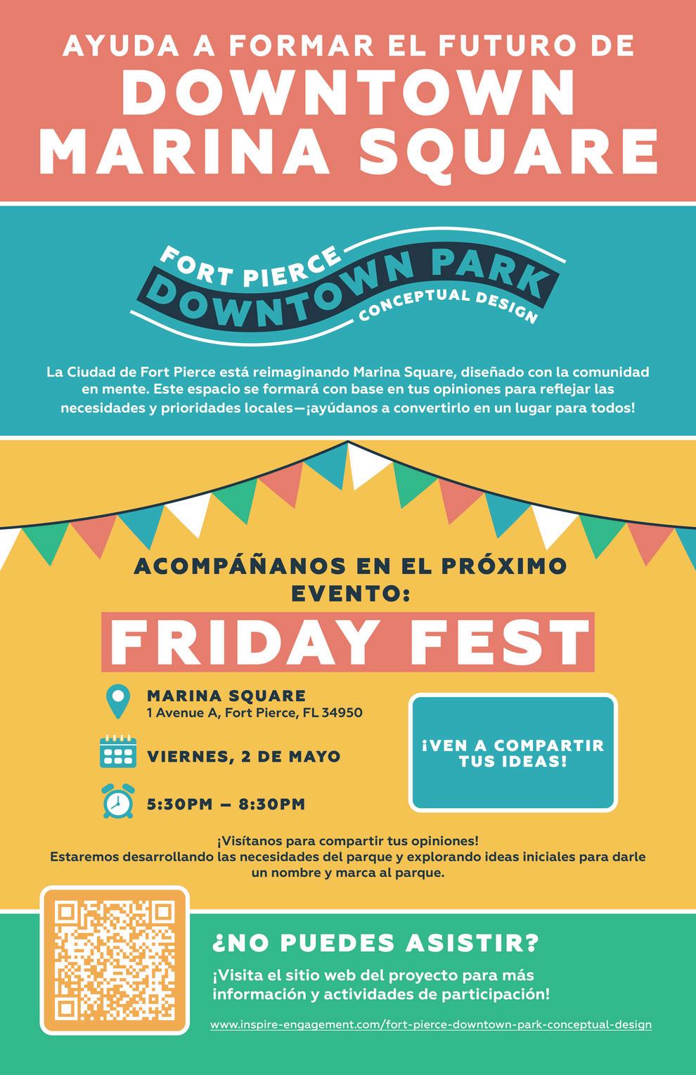 The next community engagement will be at Friday Fest on May 2, where the Inspire team will be available from 5:30 to 8:30 PM.