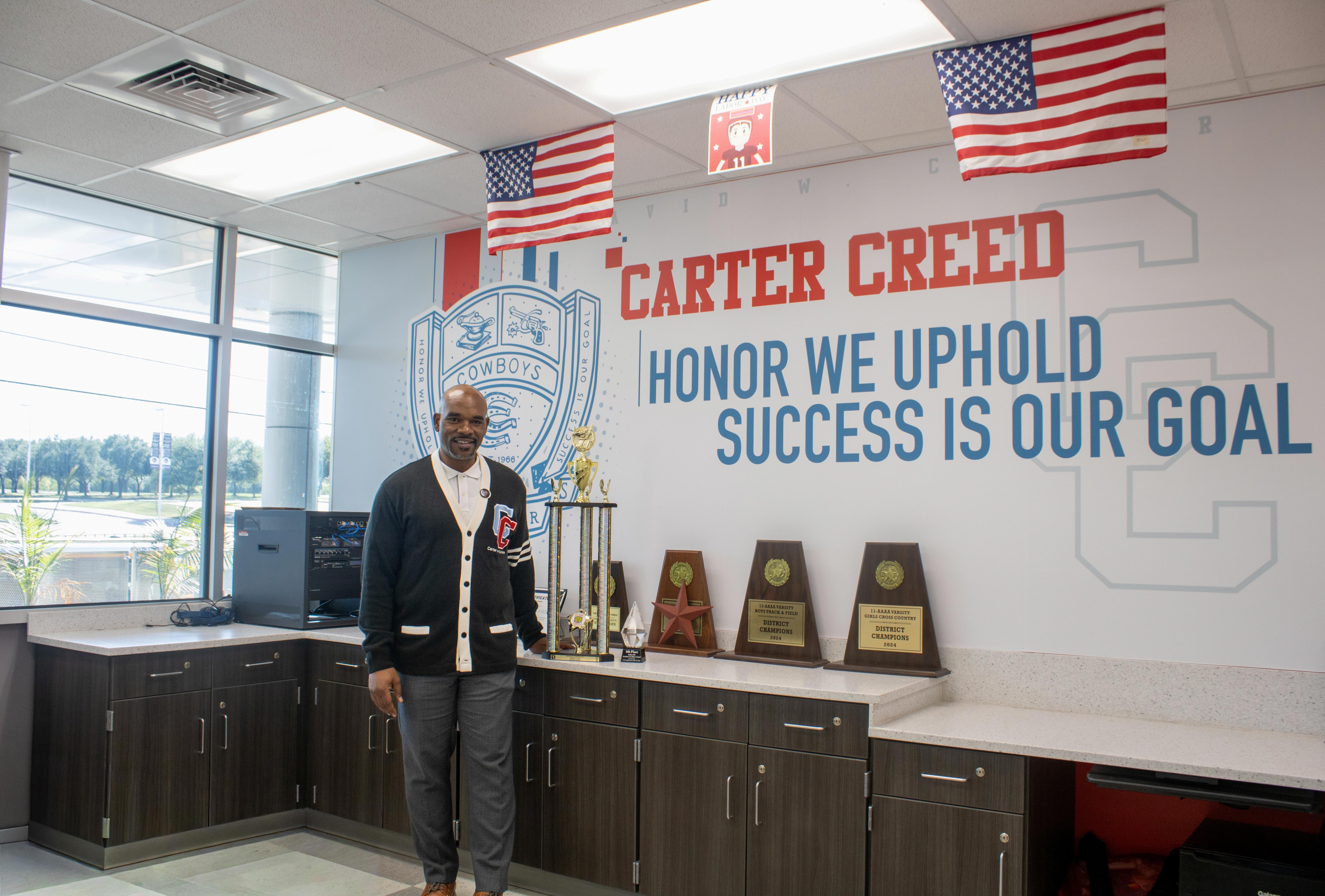 HelloCarter!I’mfrom Mississippi,butI’vebeenin Texasfor13plusyearsnow. I amreallyexcitedtobeapart ofDavidW.CarterHigh School,andI’mlooking forwardto anawesome schoolyear!”