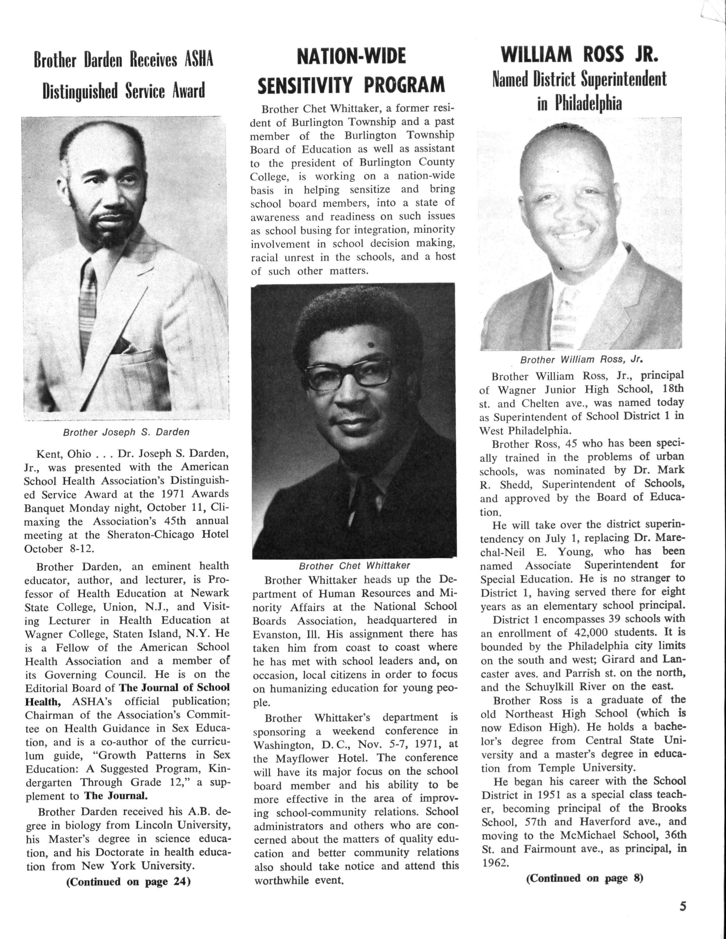 • Brother Otis Tillman is serving as a trustee at A &T State University and president of the Model Cities Commission in High Point, N.C.