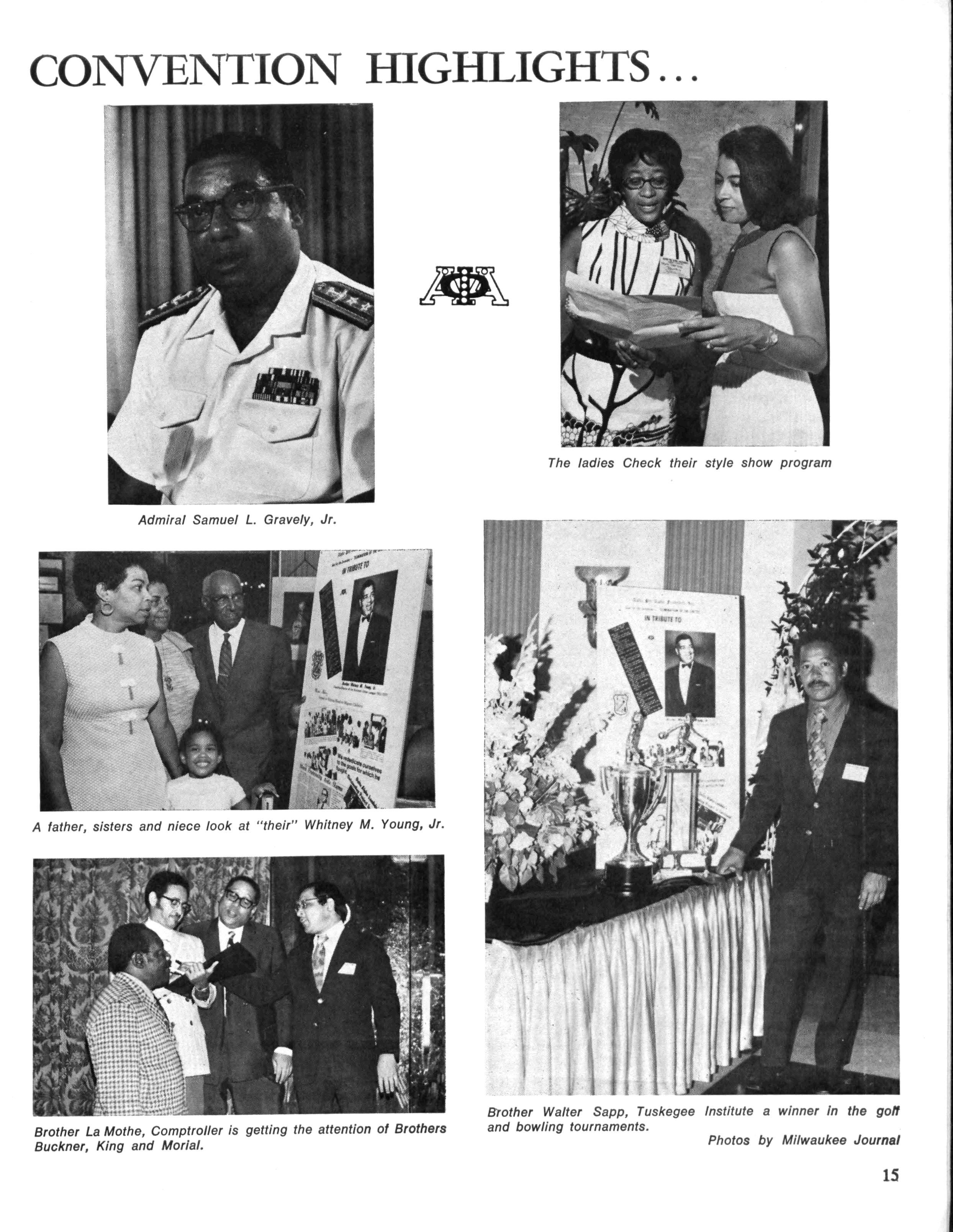 The chapter had representation to the District VII — Virginia Annual Virginia Association of Alpha Phi Alpha Fraternity's (V.A.C.A.P.A.F.) Convention in Petersburg, Va February, and delegates to the Eastern Regional Convention in Pittsburgh, Pa. in May, 1971. Representatives have been elected to represent the Chapter at the General Convention in Milwaukee in August. Among the officers of the Chapter are; Bro Douglas Cooley, Sr., President, Bro Herman Lundy, Vice President, Bro. Richard Booker, Secretary, and Bro Dr Nathaniel West Treasurer