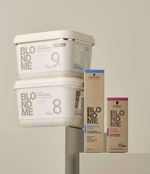 Siekiant tobulų šviesių plaukų rezultatų, teikite rekomenduojamą BLONDME Glow tonavimo paslaugą (išsamią informaciją apie asortimentą ir naudojimą žr. 28-31 psl.).