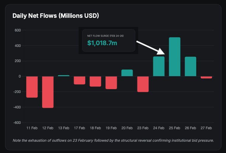 圖4:每日淨流量分析(2 月11 日至 27 日)(資料來源:FarsideUK)