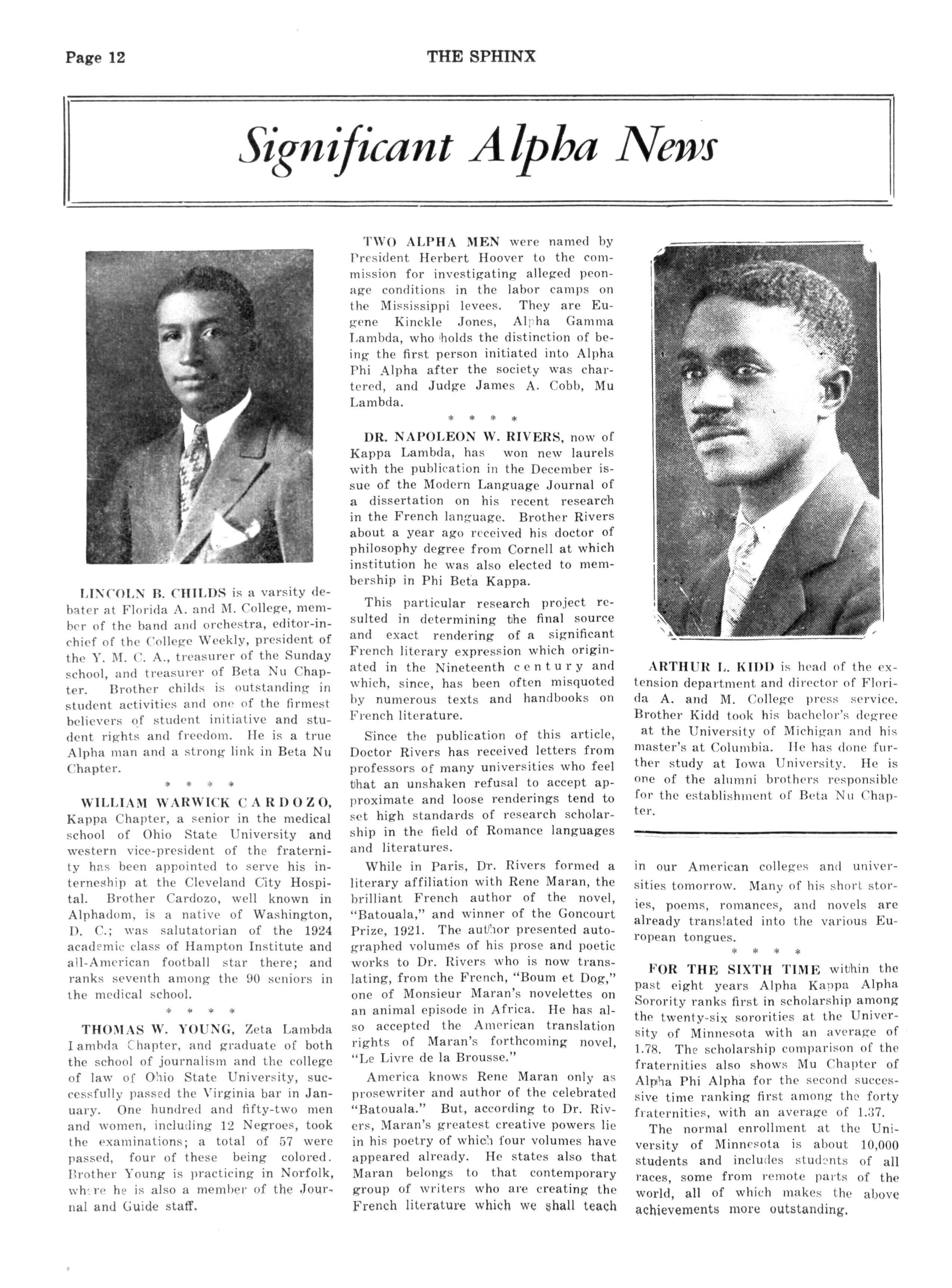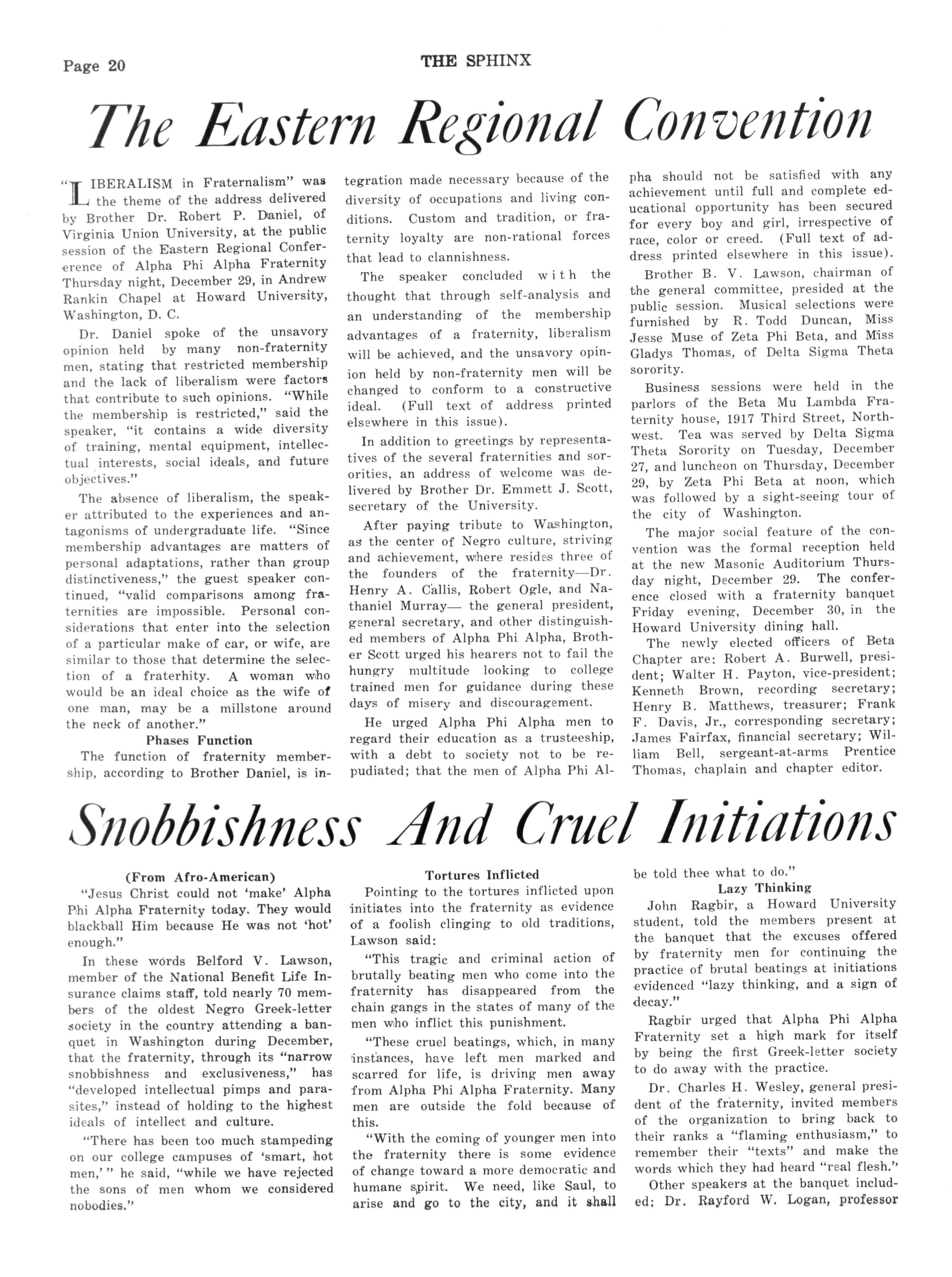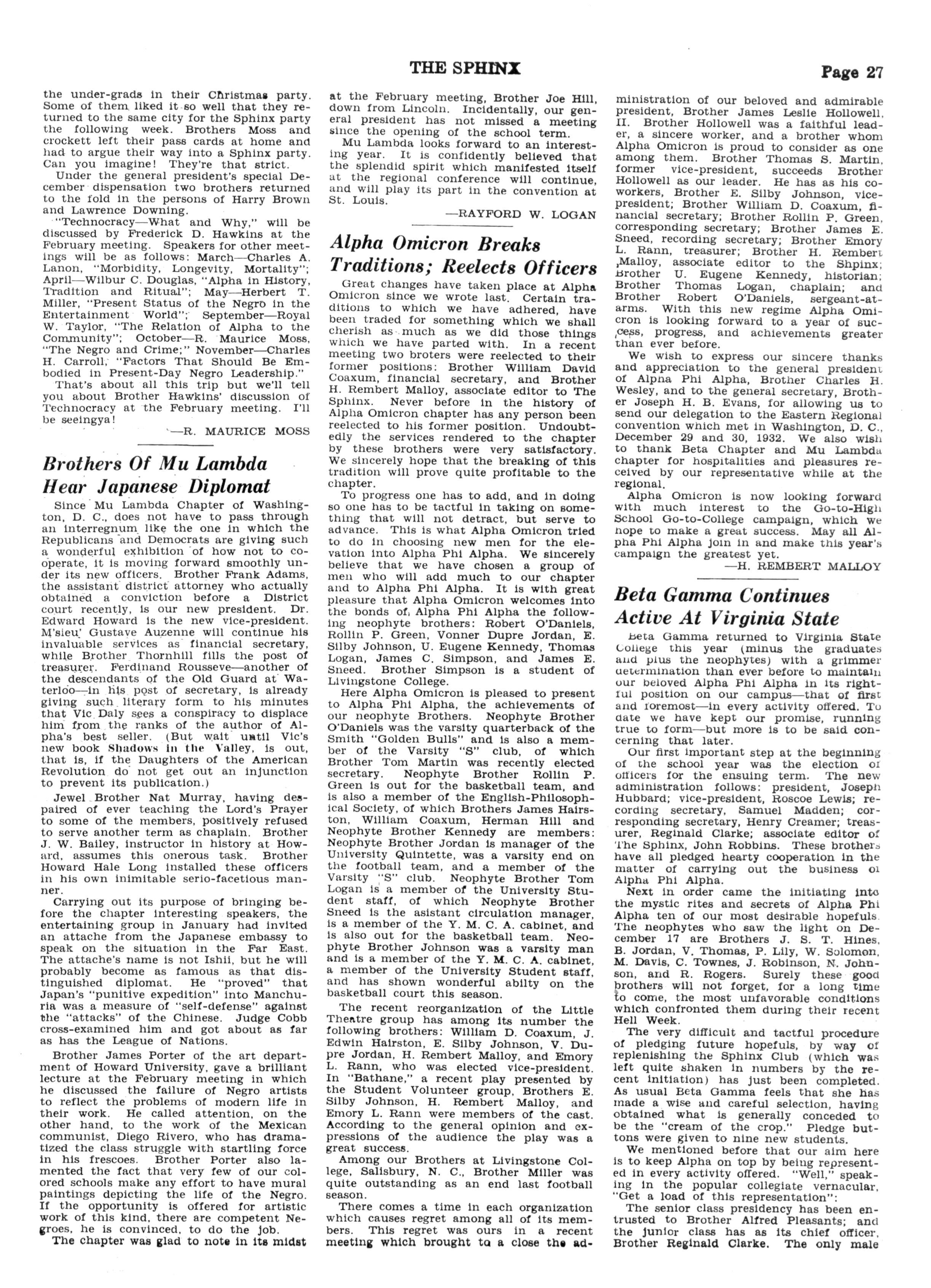 Here, in Washington, the seat of Mu Lambda and Beta Chapters, may be found in the full fruitage of purpose ful achievement the glowing personalities of those honored reverend seignors of Alpha Phi Alpha