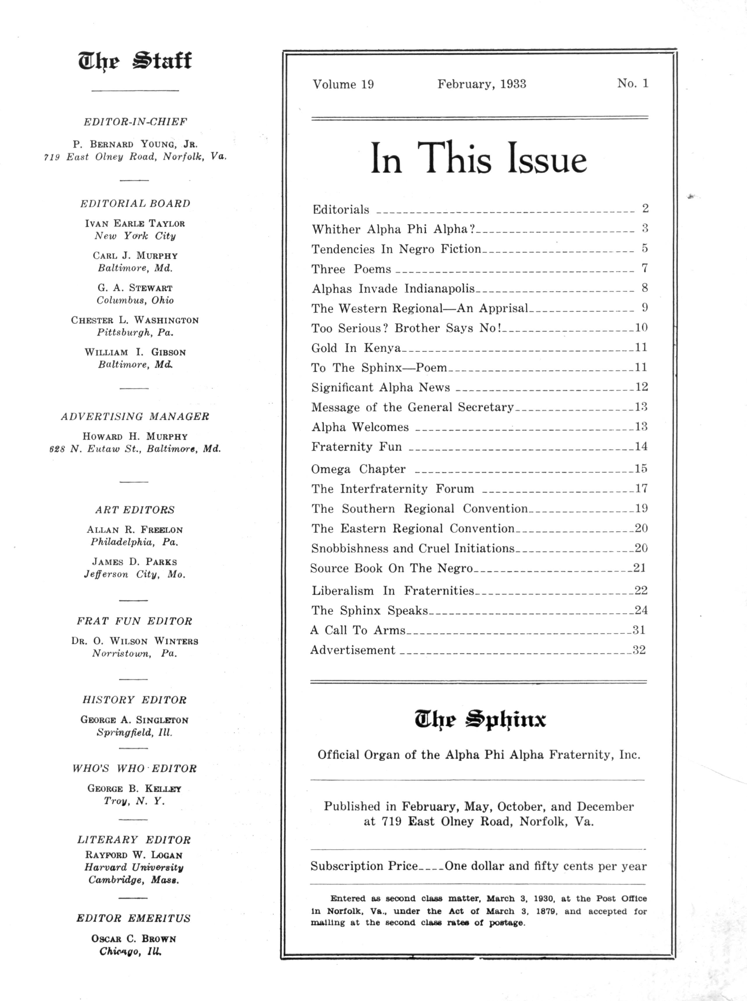 SPHINX EDITOR, P. Eernard Young, Jr., 719 E Olney Road, Norfolk, Va
