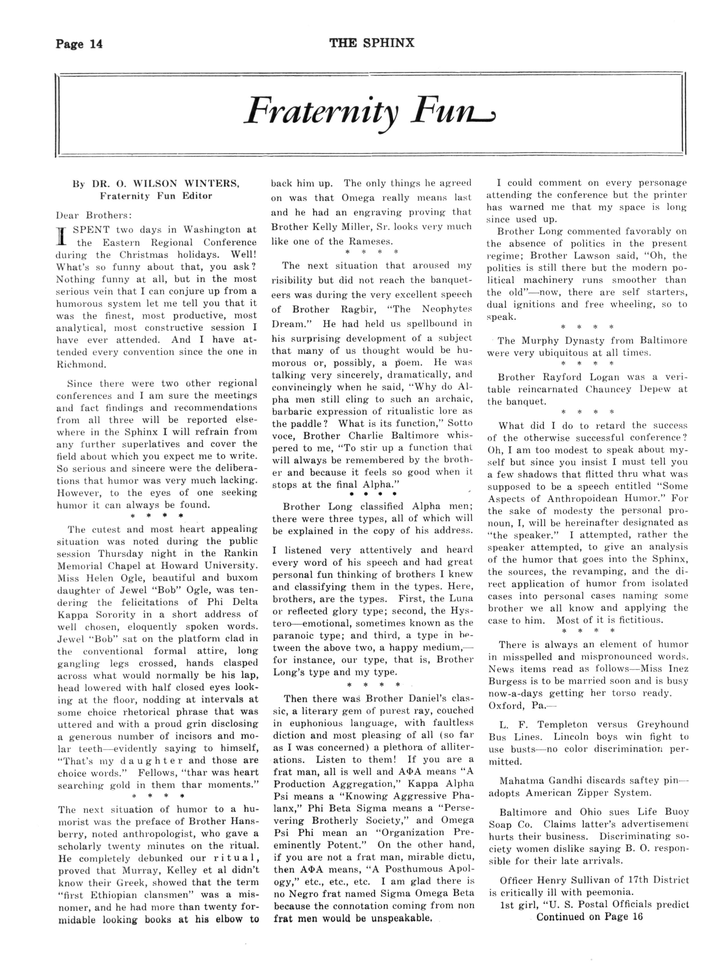 Speaking about the holidavs reminds us that our president. Brother Thomas H. Henderson, reports a 'heluva' good time at the regional In Washington. "In fact." says he. "so much took place I couldn't begin to tell you all about it."