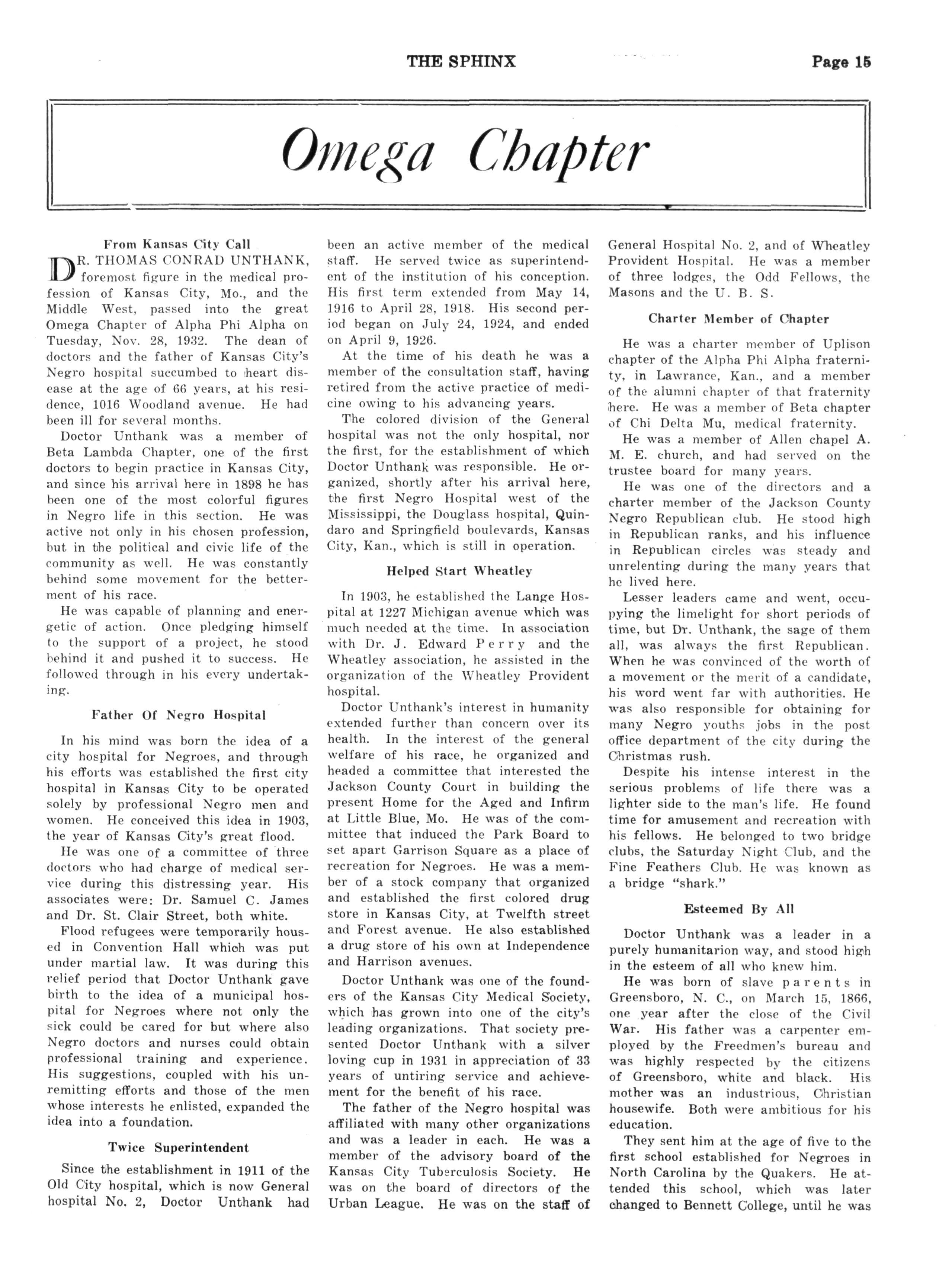 CHI, Meharry Medical College, Nashville, Tenn.; Pres., George H Evans; Sec'y., Bascomb S. Waugh, 1017 Sixteenth Ave., N