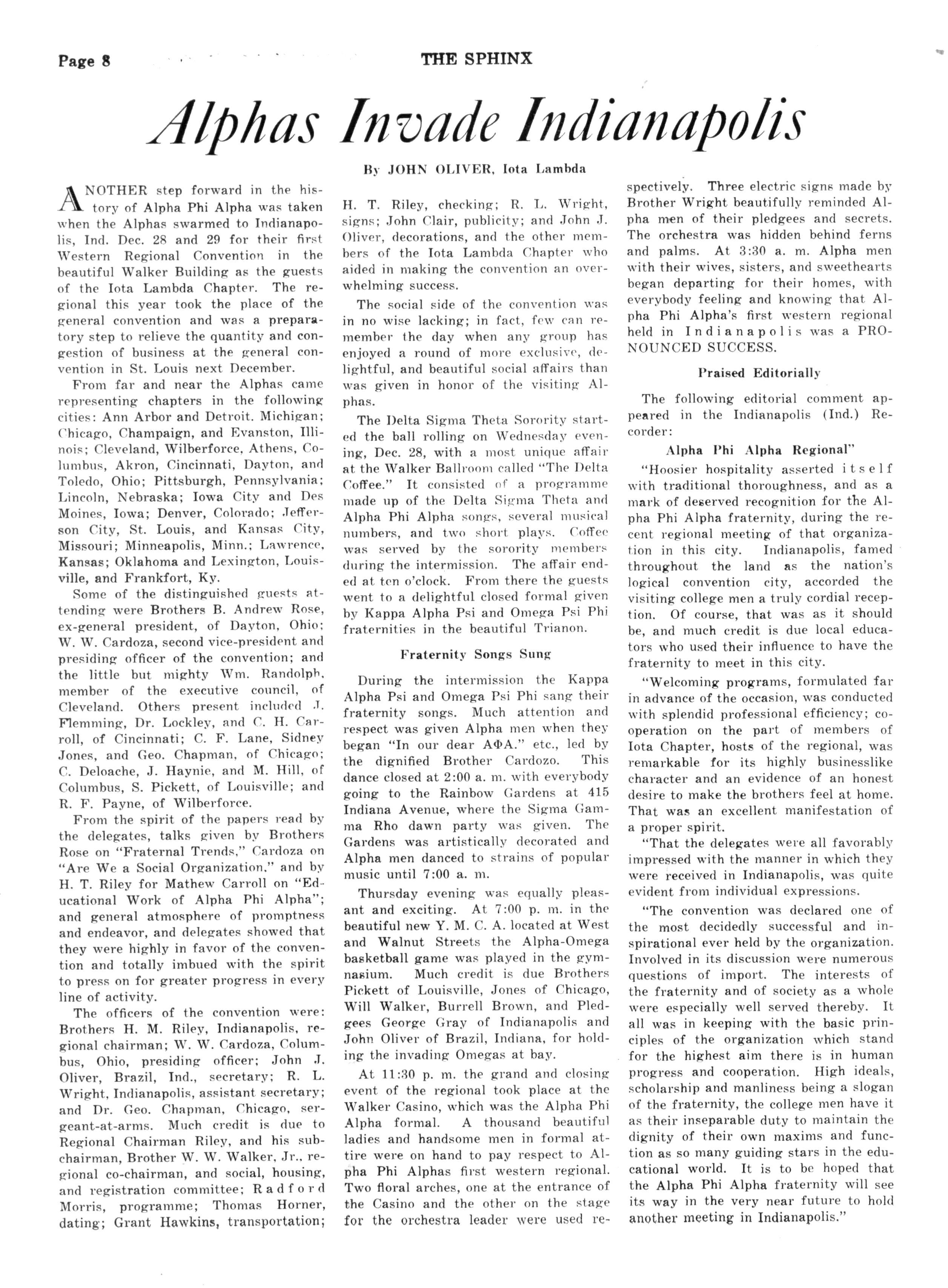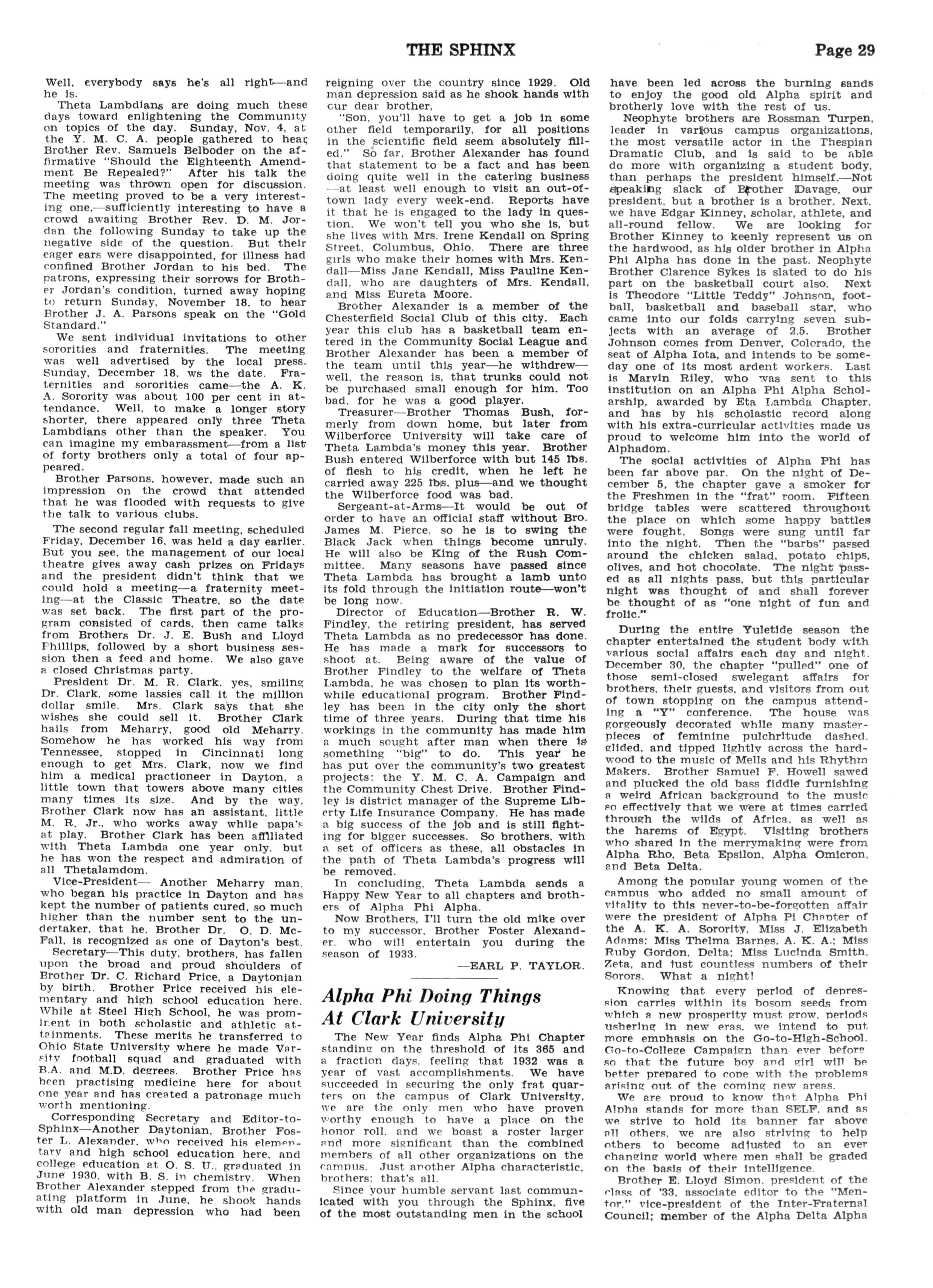 ALPHA PHI, Clark University, Atlanta, Ga.; Pres., Booker T Carraway; Secy. Samuel F Howell