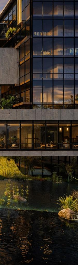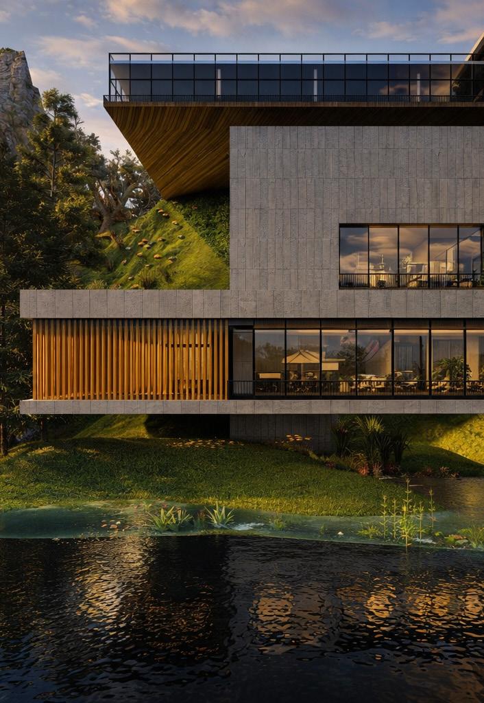 Concept-driven and sustainabilityoriented, focusing on massing, light, and spatial experience.