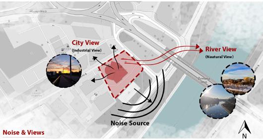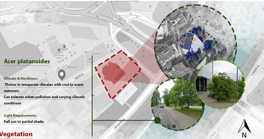 The site analysis examines the environmental, spatial, and contextual factors influencing the project. Key considerations include orientation, climate conditions, surrounding urban fabric, accessibility, and views. These parameters informed the design strategy, guiding massing decisions, circulation patterns, and the integration of open spaces to ensure responsiveness to both context and user experience.