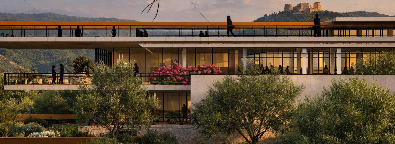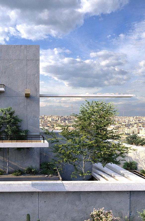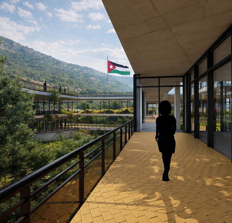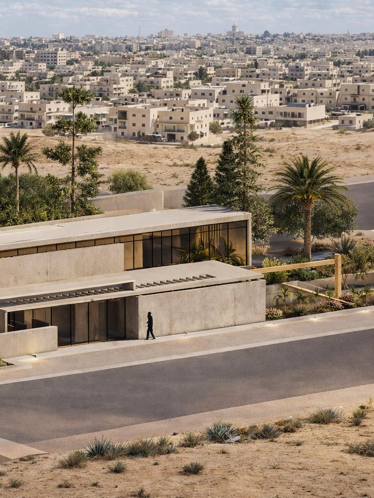 Located on a distinctive cliff site overlooking the Yarmouk River, the project responds to both strong views and structural challenges.