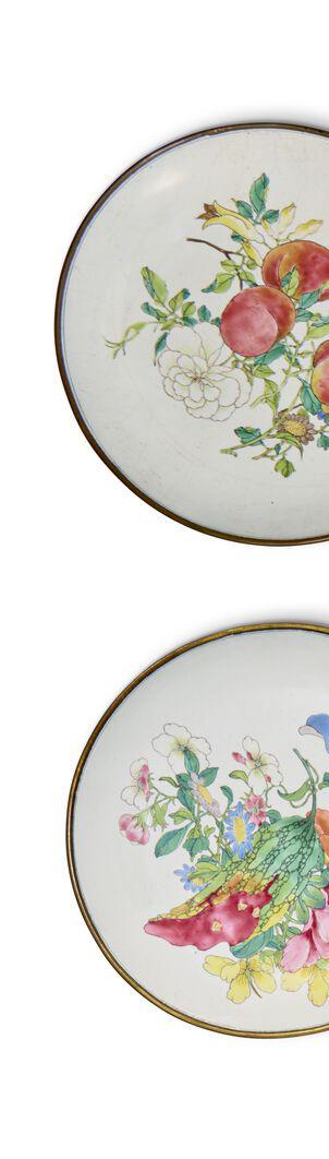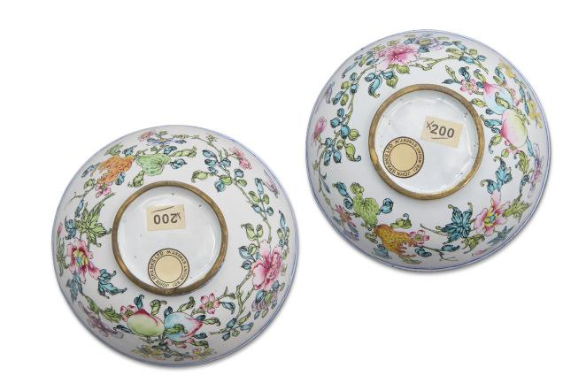 清乾隆 銅胎畫琺琅蝶戀花紋碗 一對