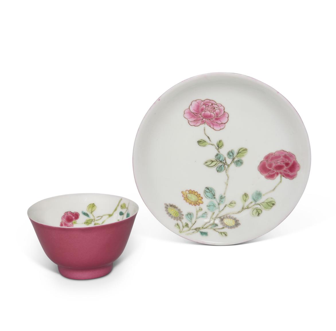 胭脂紅釉杯及碟: 英國古董商Alfred Samson de Pinna (1868-1963)舊藏