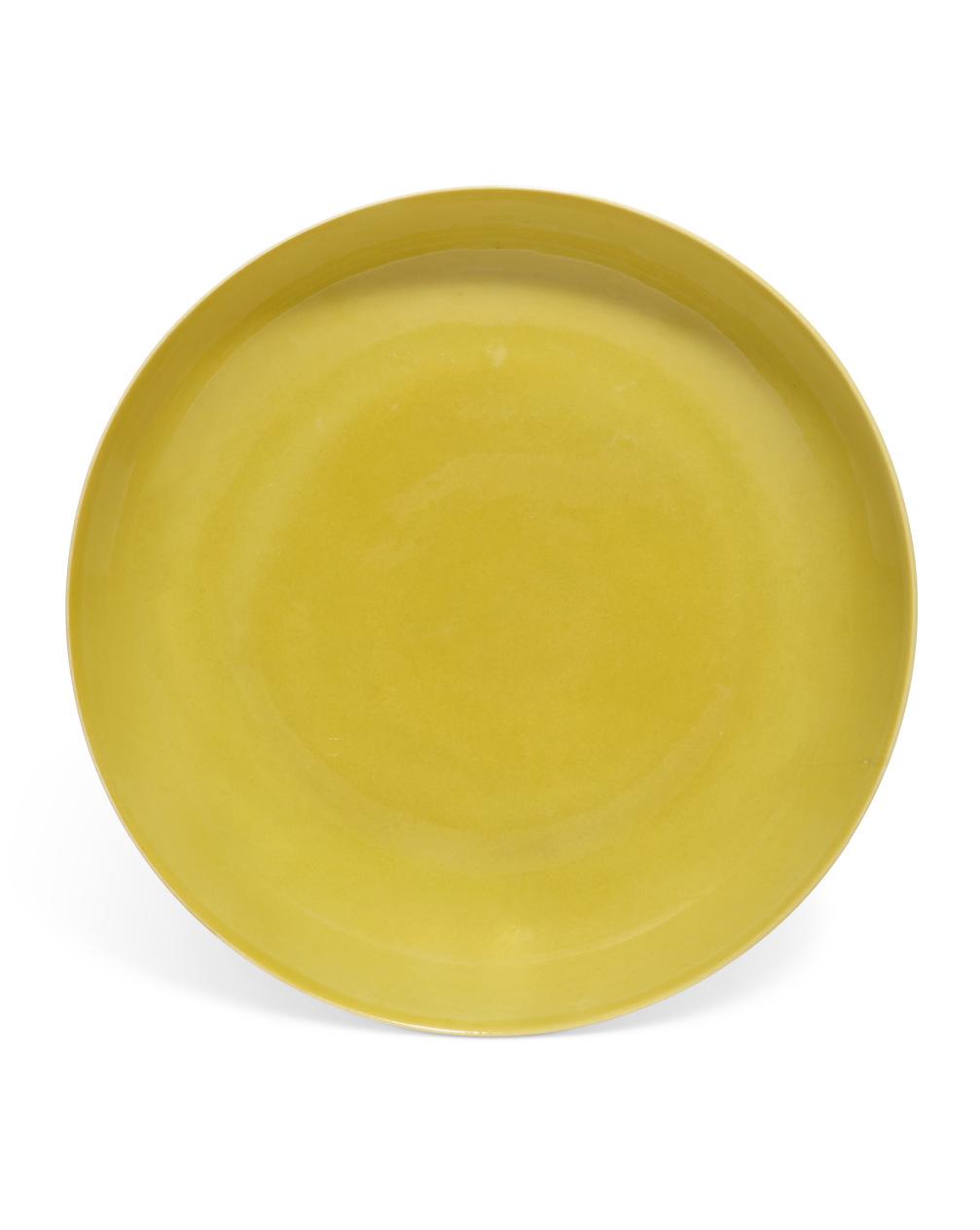 私人珍藏 明弘治 黃釉盤 青花雙圈六字楷書款