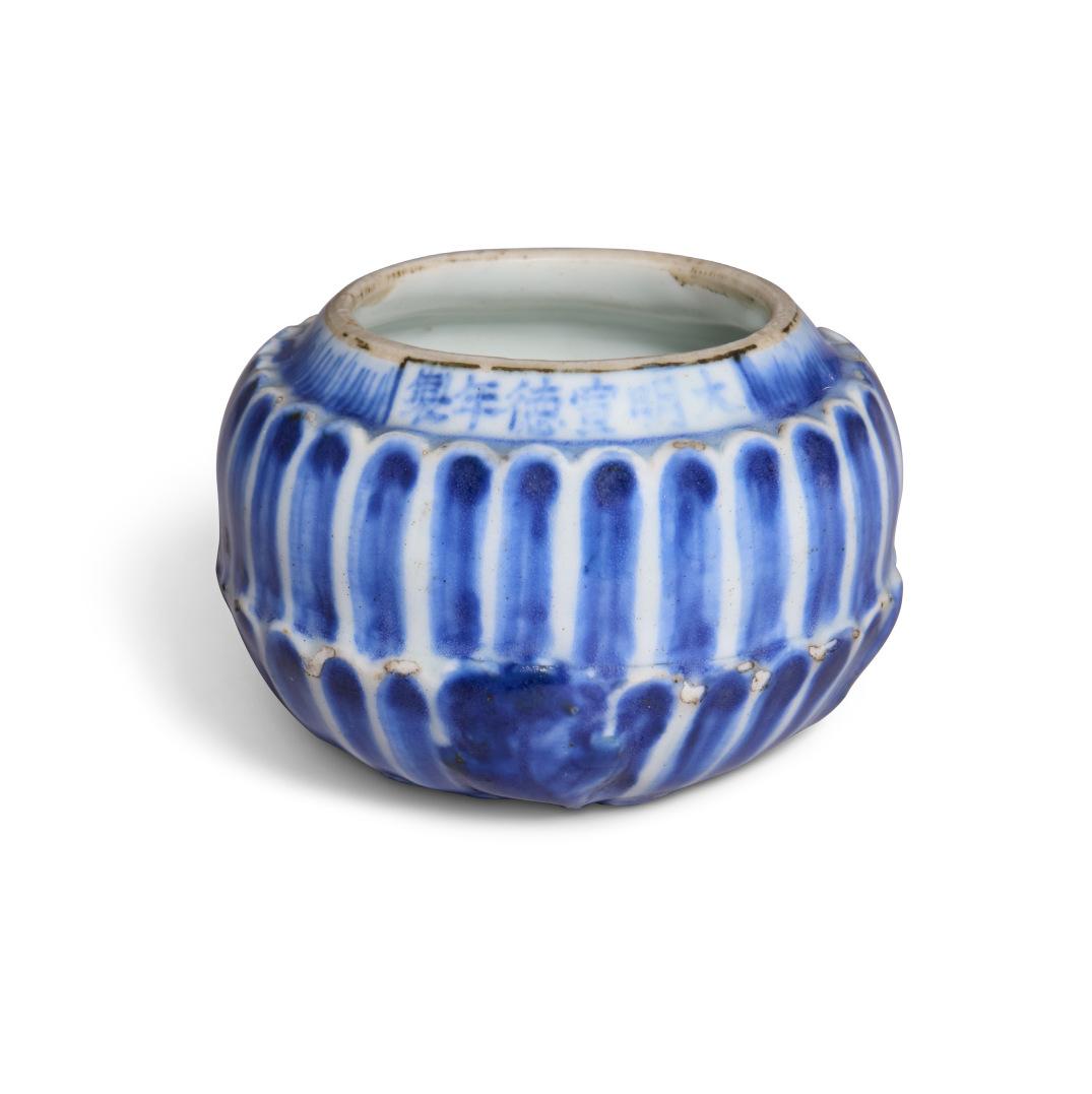 CHINA, MING DYNASTY, HONGZHI SIX-CHARACTER MARK WITHIN A DOUBLE CIRCLE IN UNDERGLAZE BLUE AND OF THE PERIOD (14881505)