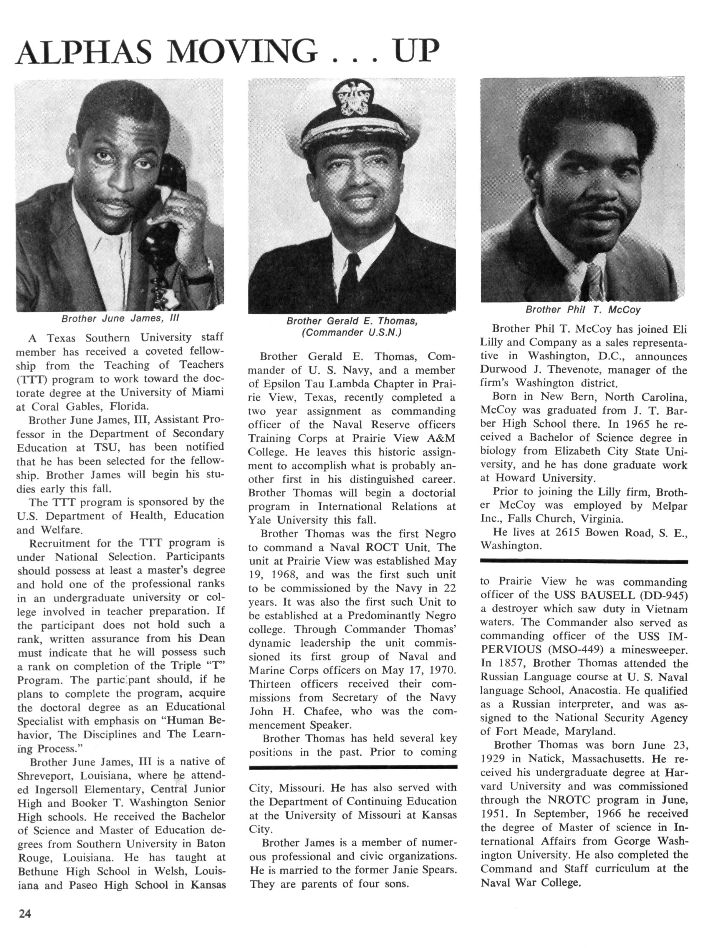 These various pursuits of our Alpha Brother are: Elected Faculty Representative on Board of Regents of Kentucky State College; member of Regional selection Committee on Danforth Associate Program (Danforth Foundation); member of Governor's Efficiency Task Force; President of Kentucky State Conference of the American Association of University Professors; member of Commission on Colleges of Southern Association of Schools and Colleges