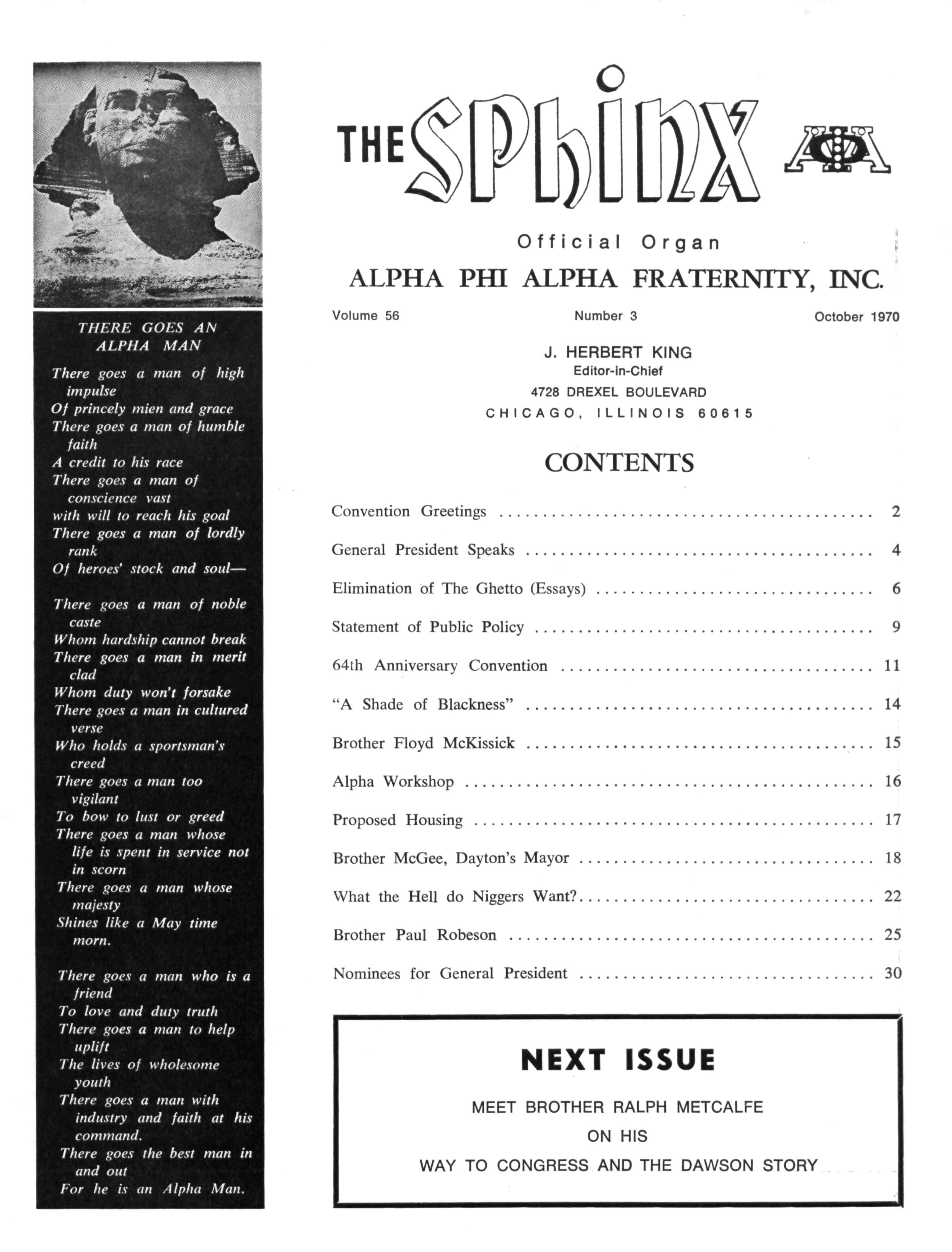 Editor, "The Sphinx" — J Herbert King 4728 Drexel Boulevard, Chicago, Illinois 60615