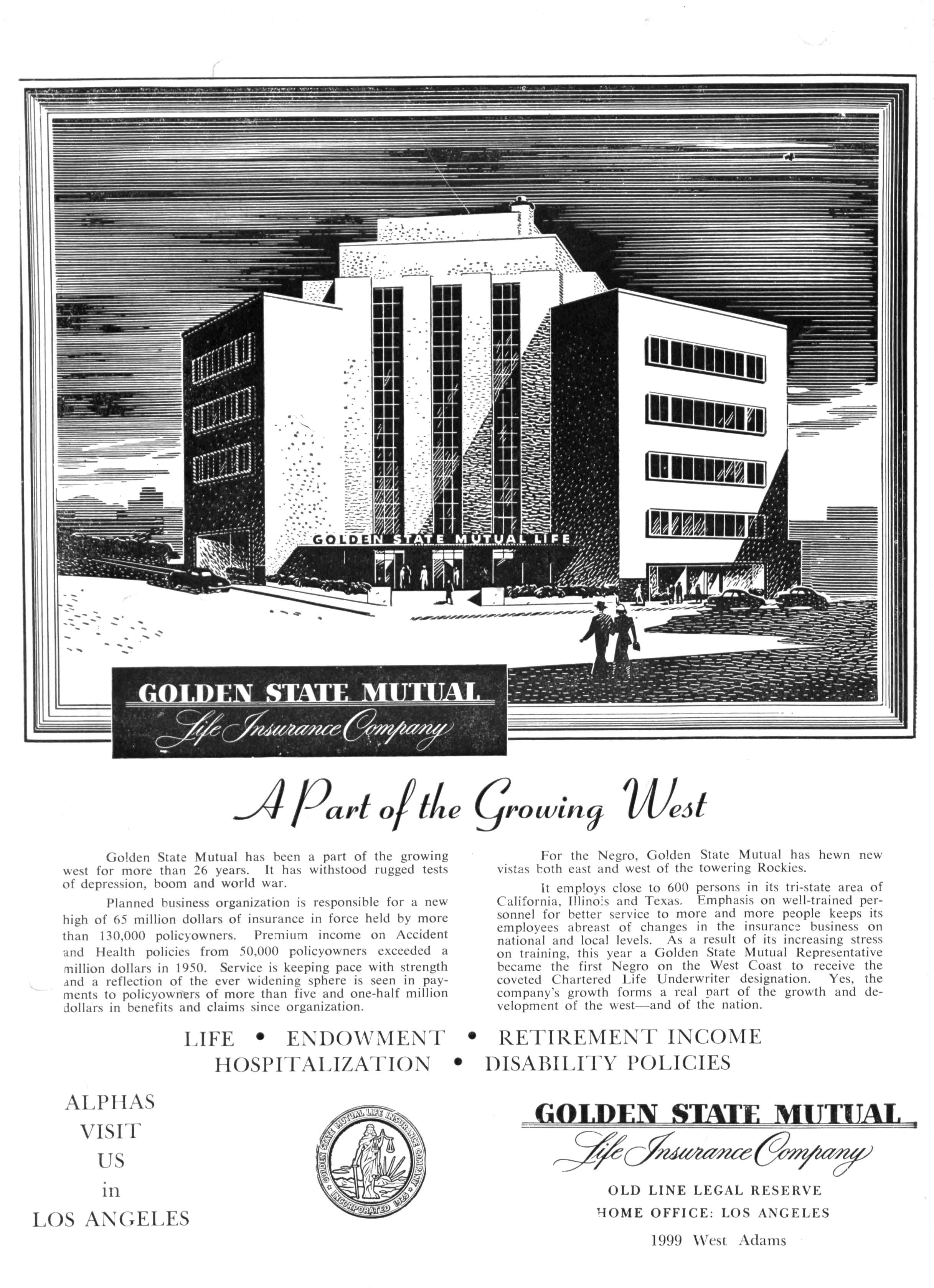 Golden State Mutual has been a part of the growing west for more than 26 years It has withstood rugged tests of depression, boom and world war
