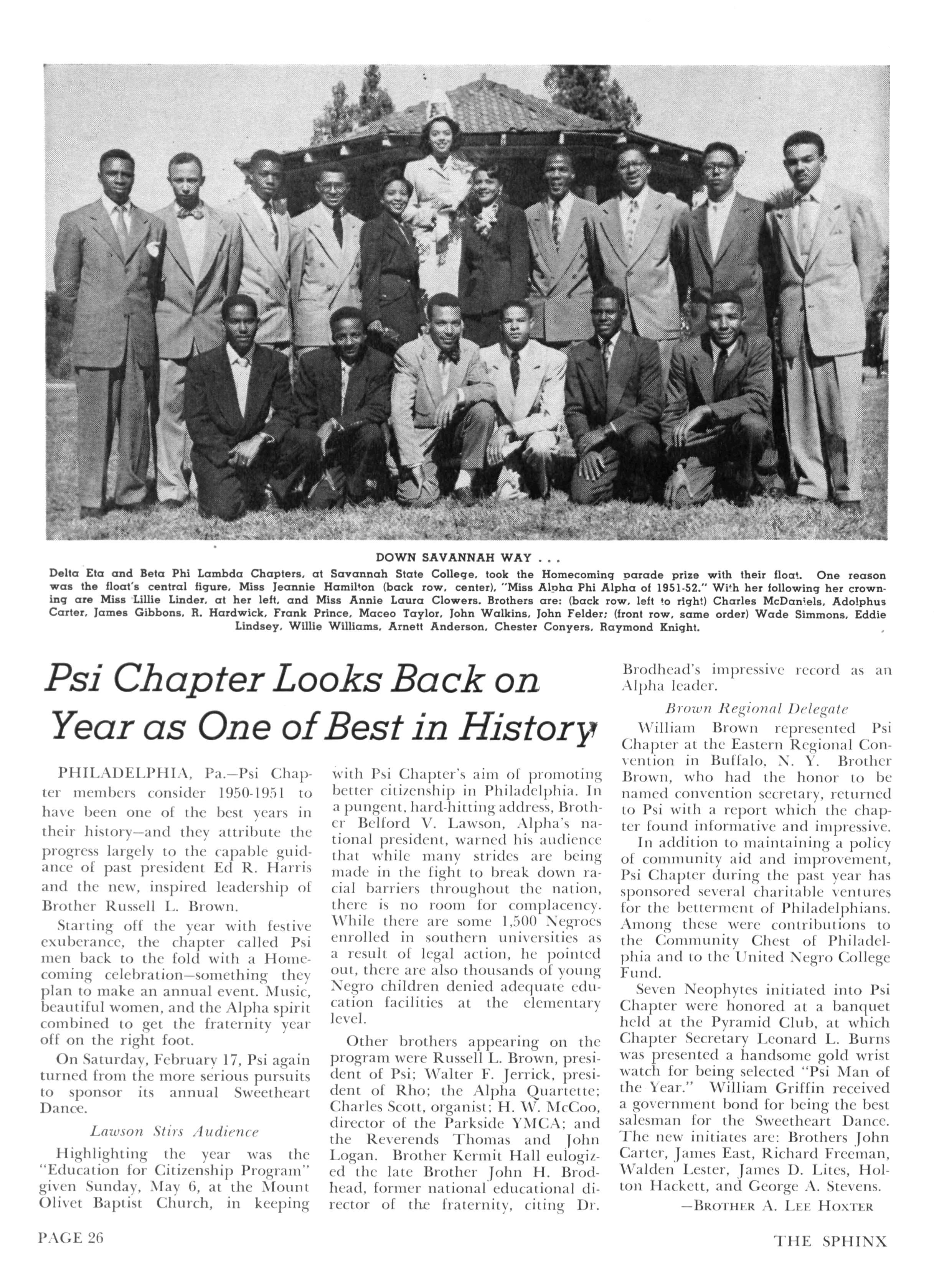 ATLANTA, Ga.-Since the last edition of the SPHINX, Alpha Rho Chapter has advanced the ideals of Alpha Phi Alpha through both group and individual efforts