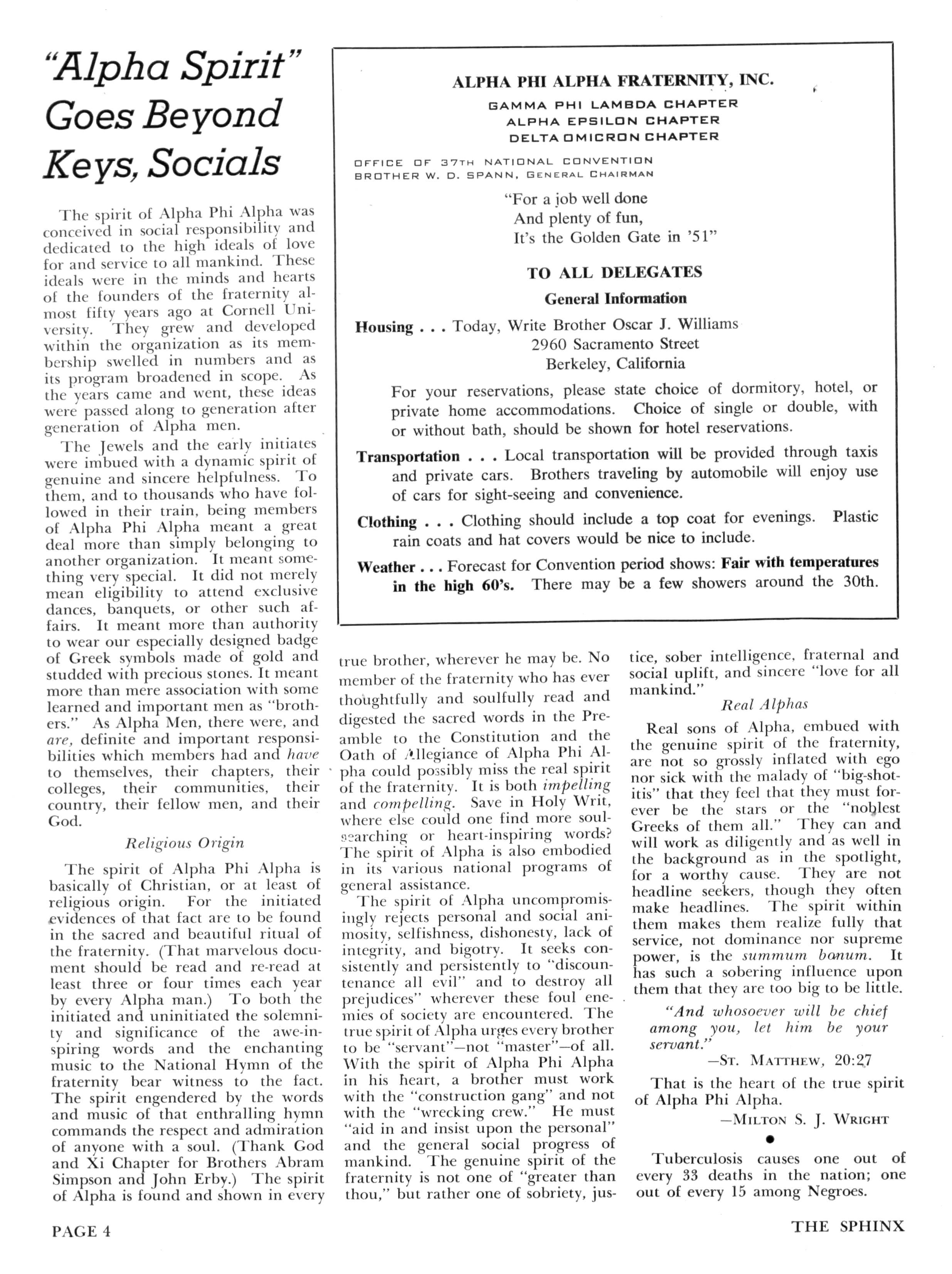 Harry Seheil, Gary, Indiana—"Please accept my heartfelt congratulations upon your initial publication of the SPHINX It now appears to be a magazine that is truly representative of the Alpha Phi Alpha Fraternity."