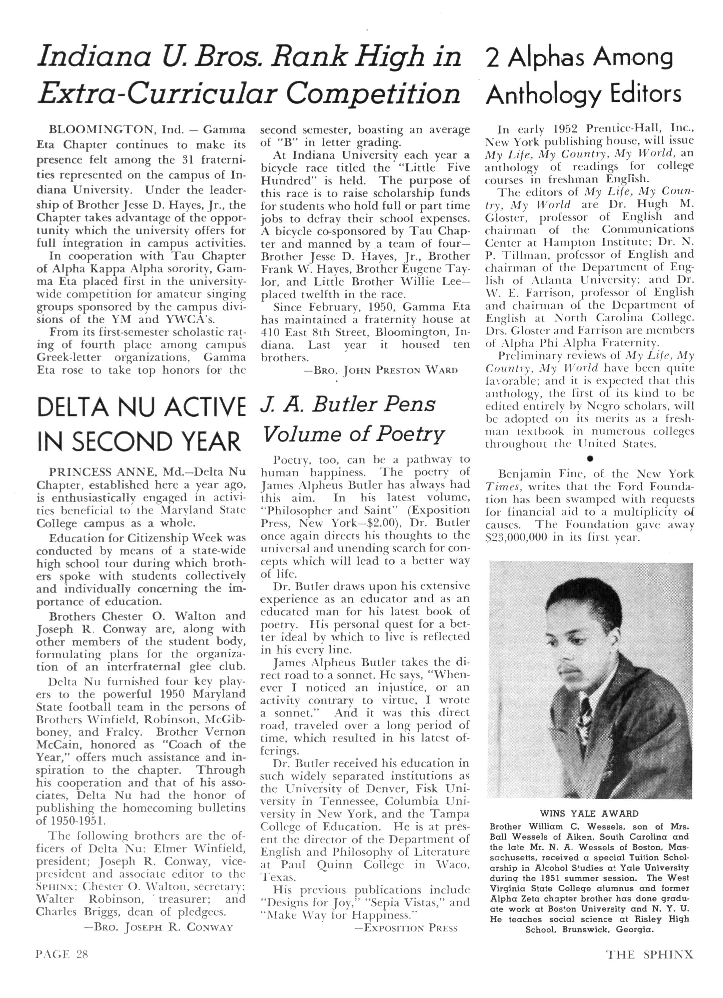 Charles Wesley, Central Stale College, Wilberforce, Ohio—"May I take this opporiunitv of congratulating you on the excellent issue of the recently received edition of the SPHINX."