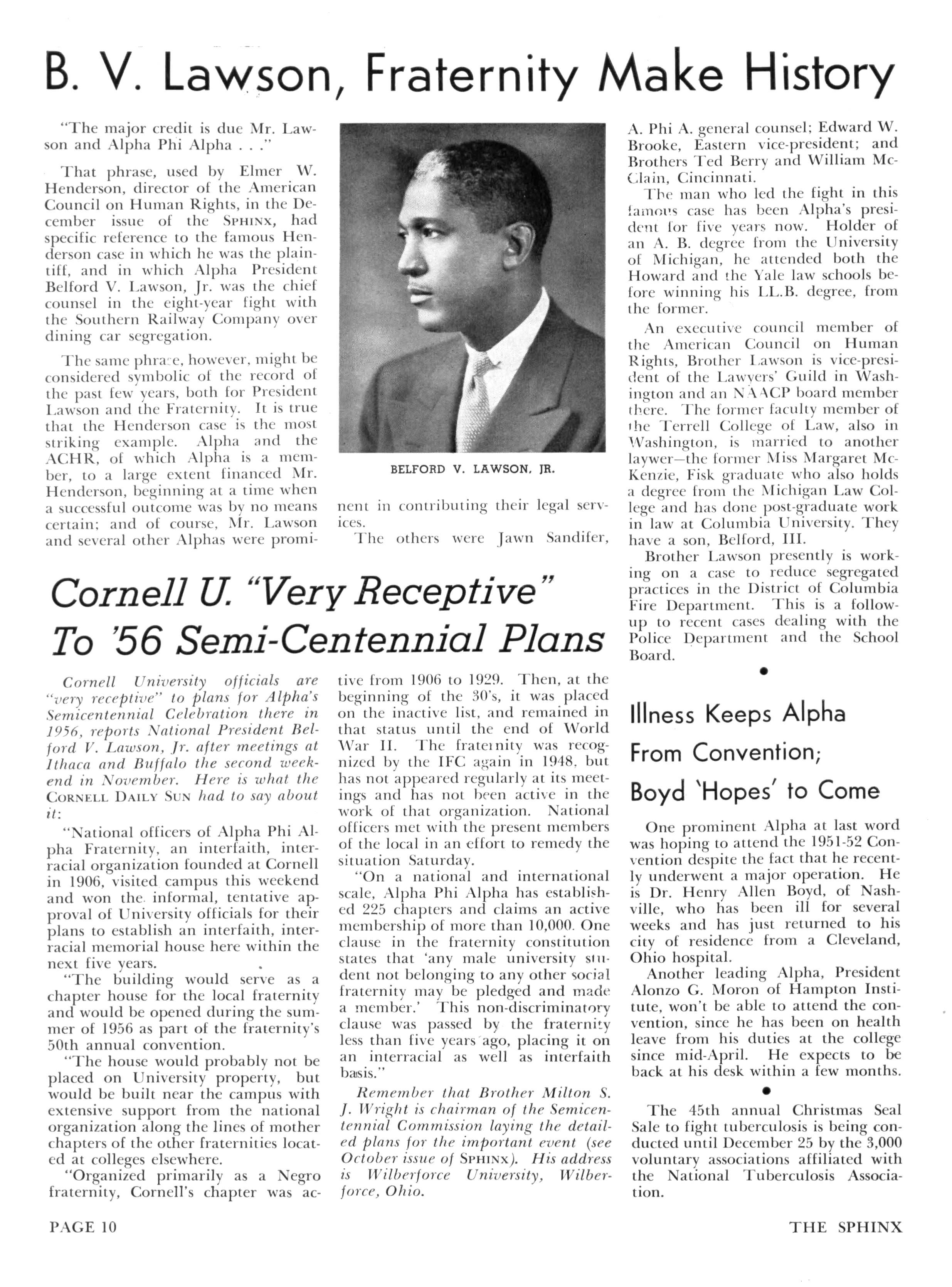Belford V. Lawson, Washington, D. C.—"I have just received my SPHINX Congratulations It is in format, style, and content a great improvement. I think Brother Campbell's feature and ad are excellent and represent the type of material which should go in the SPHINX."