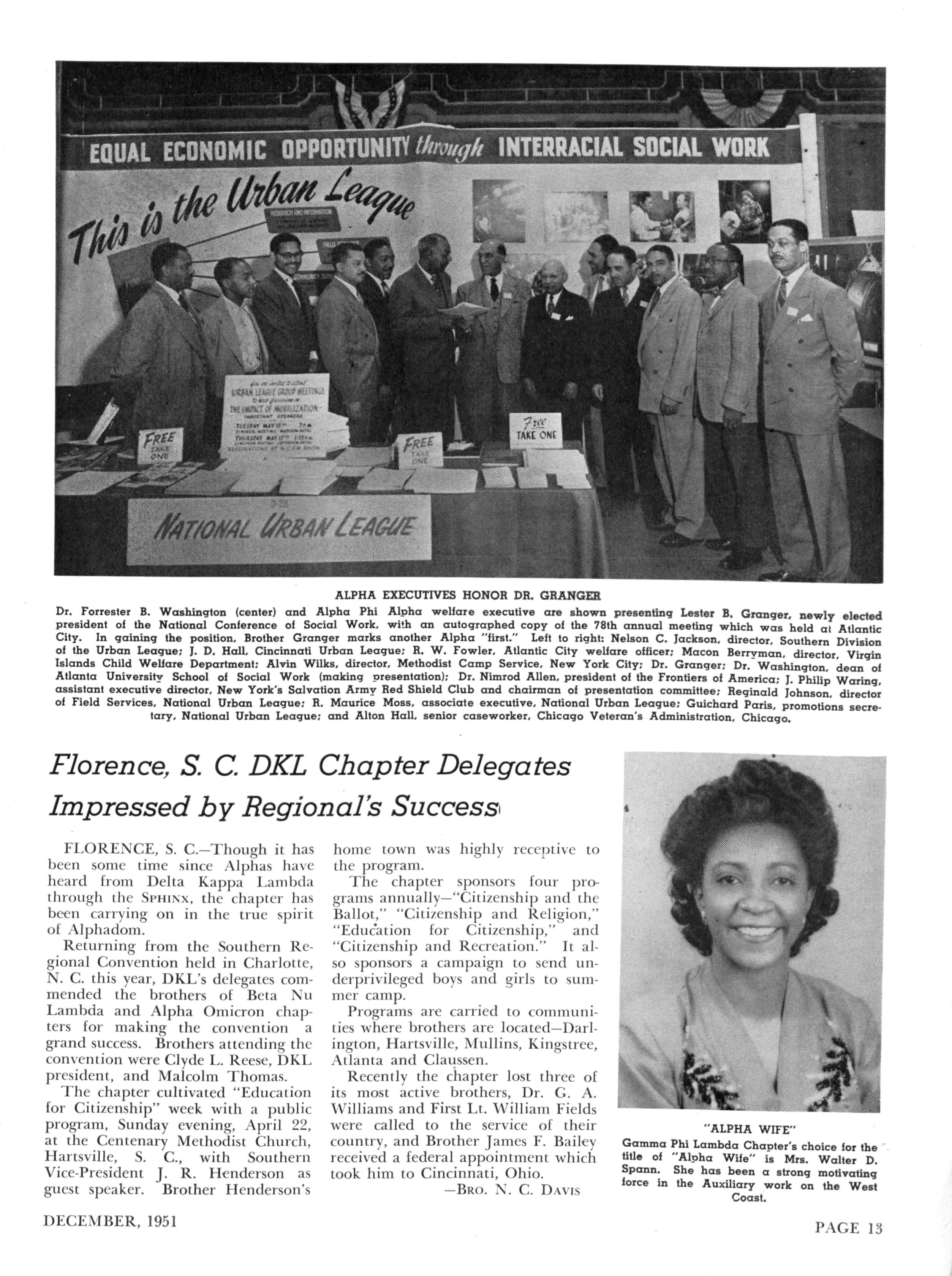 Alpha Rho was successful in its observation of Education for Citizenship Week Allotted three chapel programs for their annual observance, the brothers presented three outstanding speakers: Brother Stanley E Grannum, dean of Gammon Theological Seminary, Atlanta, Georgia; Brother Burns, civilian aide to the Secretary of Defense; and Brother W A Bell, president of Miles College, Birmingham, Alabama A console organ, rented by Alpha Rho for the programs, was played by Brother Wendell Whalum, who rendered varied types of music for the enjoyment of the faculty and student body