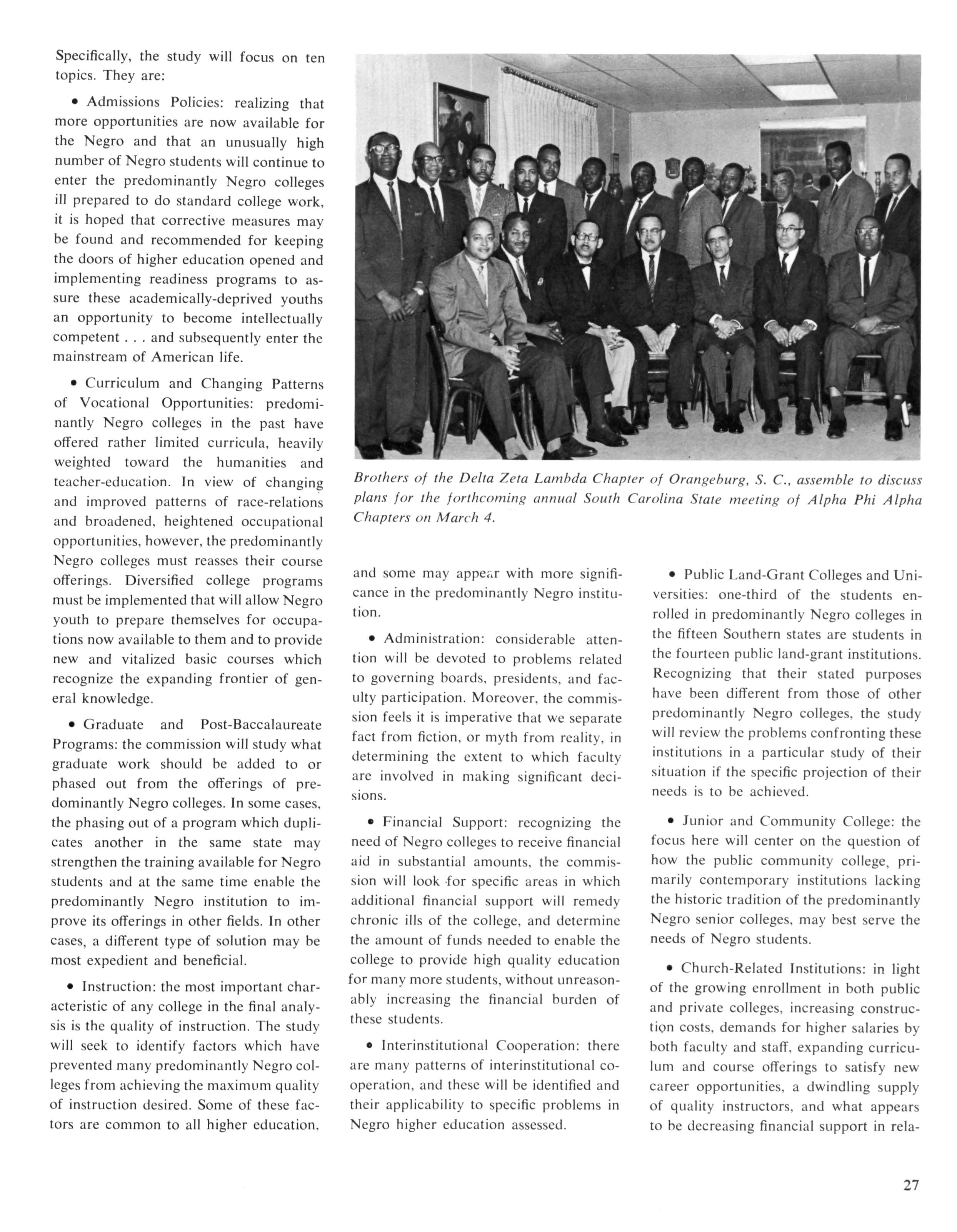 Bro Dr Lionel H Newsom, general president of Alpha and associate director of the Atlanta-based commission of the SREB, said that the project is not to be another survey or fact-finding study of predominantly Negro colleges The staff will engage in the study required to fill the gaps in available data on the institutions, and to bring some available data up to date.