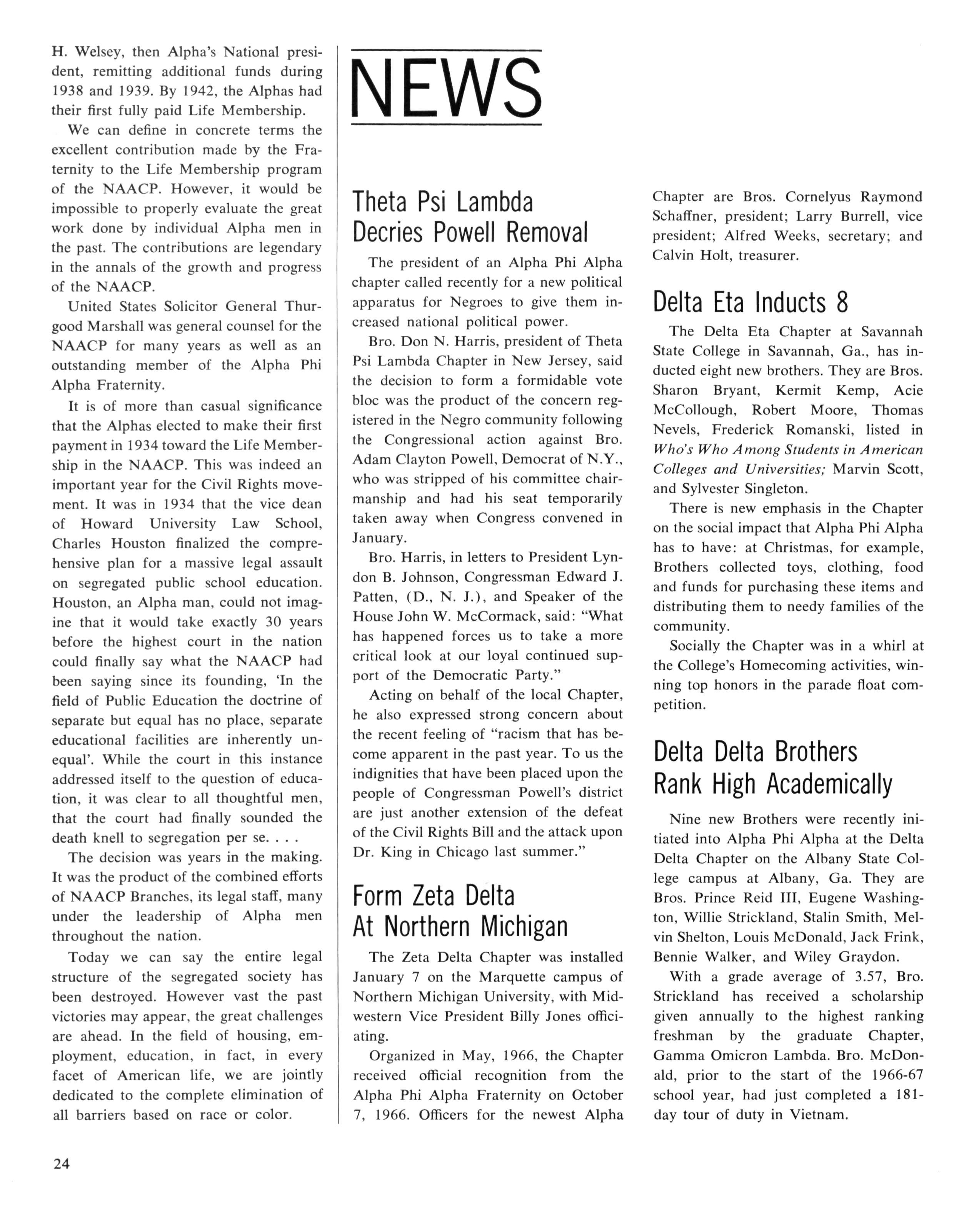 Elected to Who's Who in American Colleges and Universities were Bros Norman Armstrong, Joseph Reed, Herman Lawson, and Rodney Richards