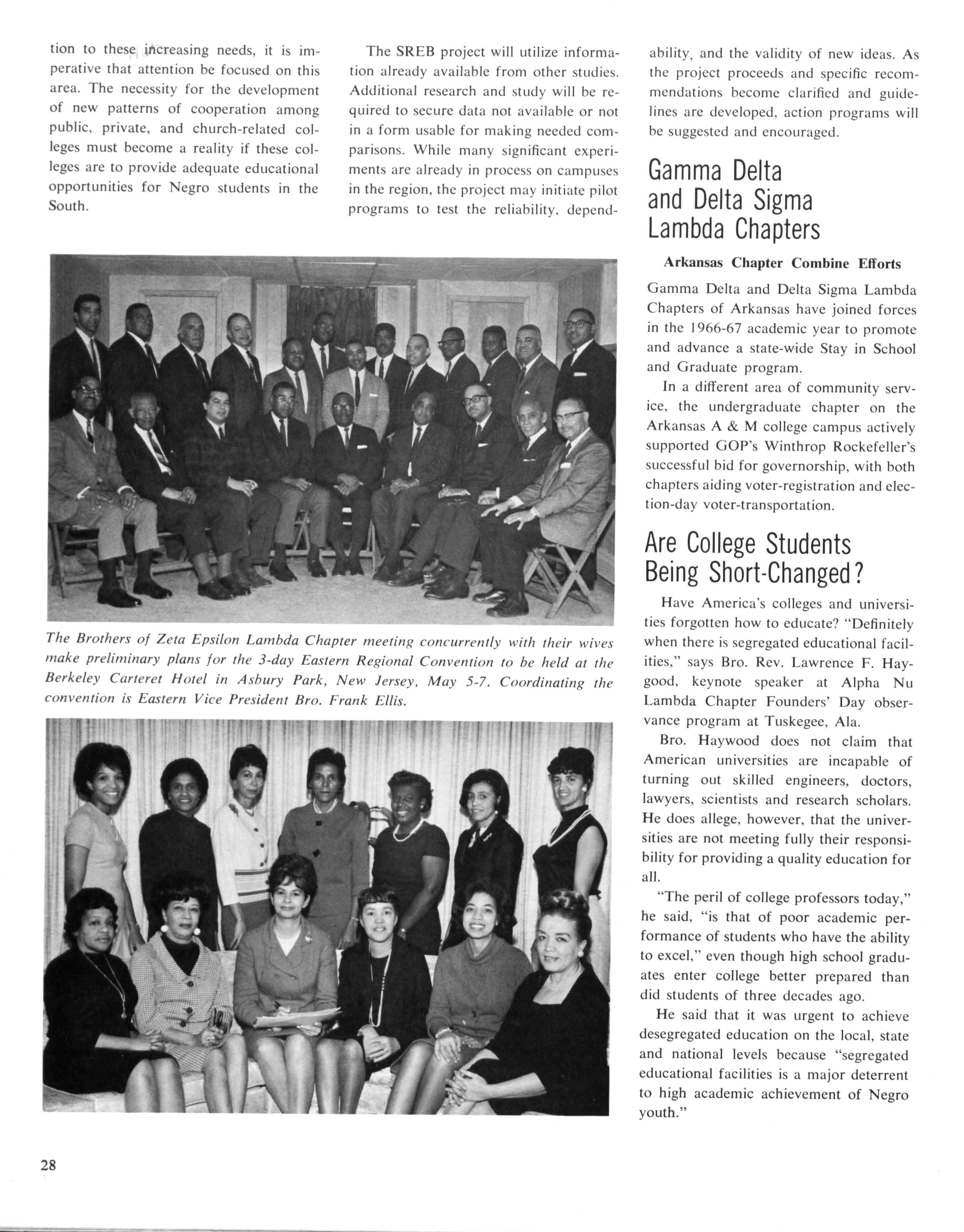 Gamma Delta and Delta Sigma Lambda Chapters of Arkansas have joined forces in the 1966-67 academic year to promote and advance a state-wide Stay in School and Graduate program