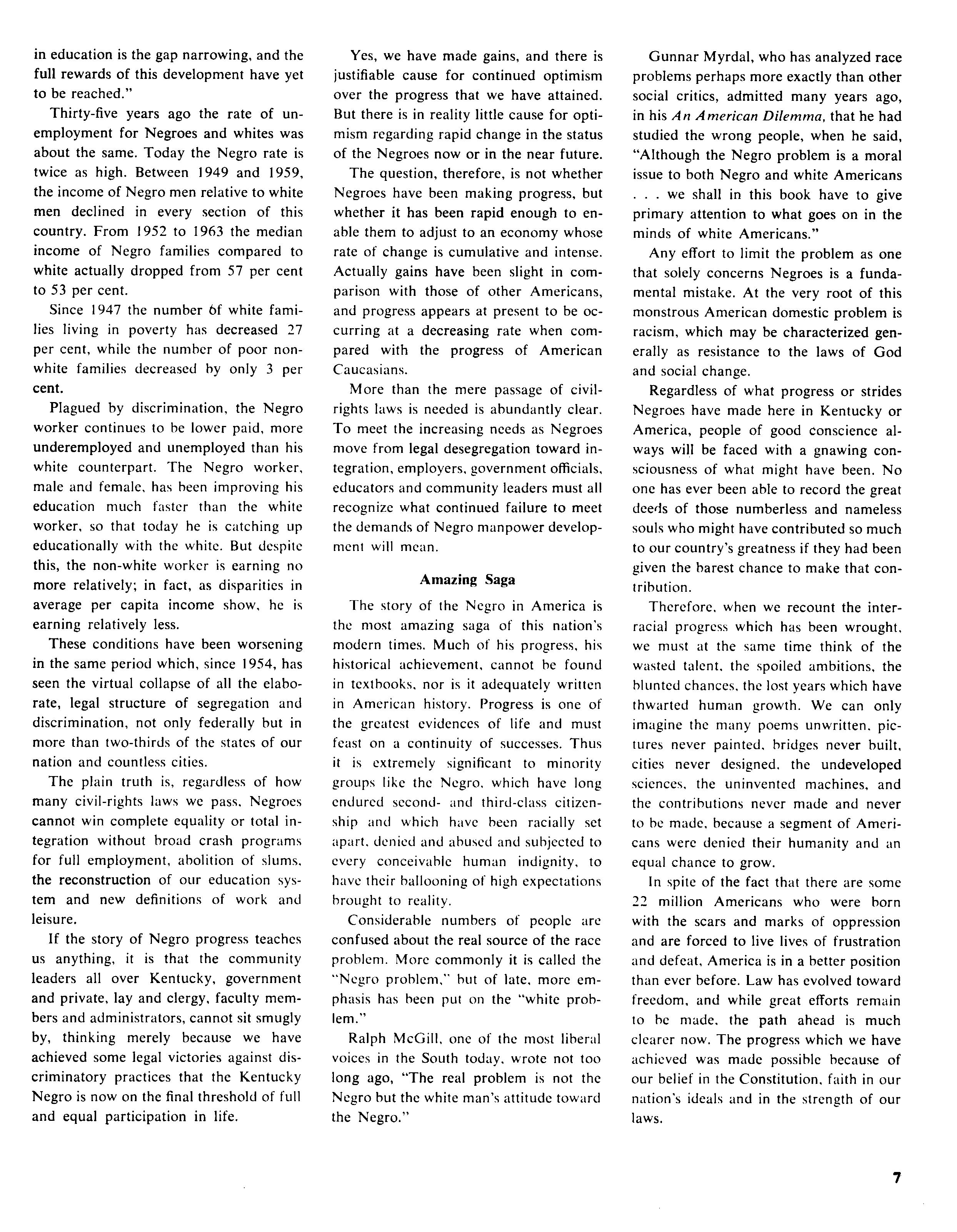 Bro. Haygood explained: "Desegregated education provides an occasion for creative academic competition and eliminates the feeling of superiority on part of whites and the feeling of inferiority on part of Negroes."