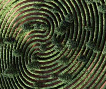 LATER REDESIGNED INTO A PARTERRE GARDEN WITH PATTERNED PATHS FOR LEISURELY WALKING.