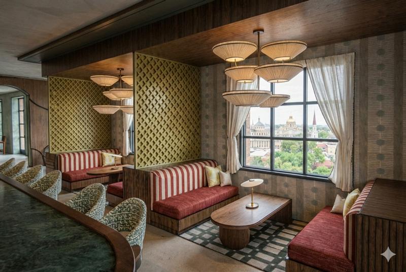 THIS STUDIO PROJECT WAS GUIDED BY THE DESIGN OF KIT KEMP AND HER WORK WITH FIRMDALE HOTELS, A BRAND KNOWN FOR CREATING TIMELESS INTERIORS THAT LEAVE A LASTING IMPRESSION, REIMAGINED WITHIN THE HISTORIC CONTEXT OF SAVANNAH.