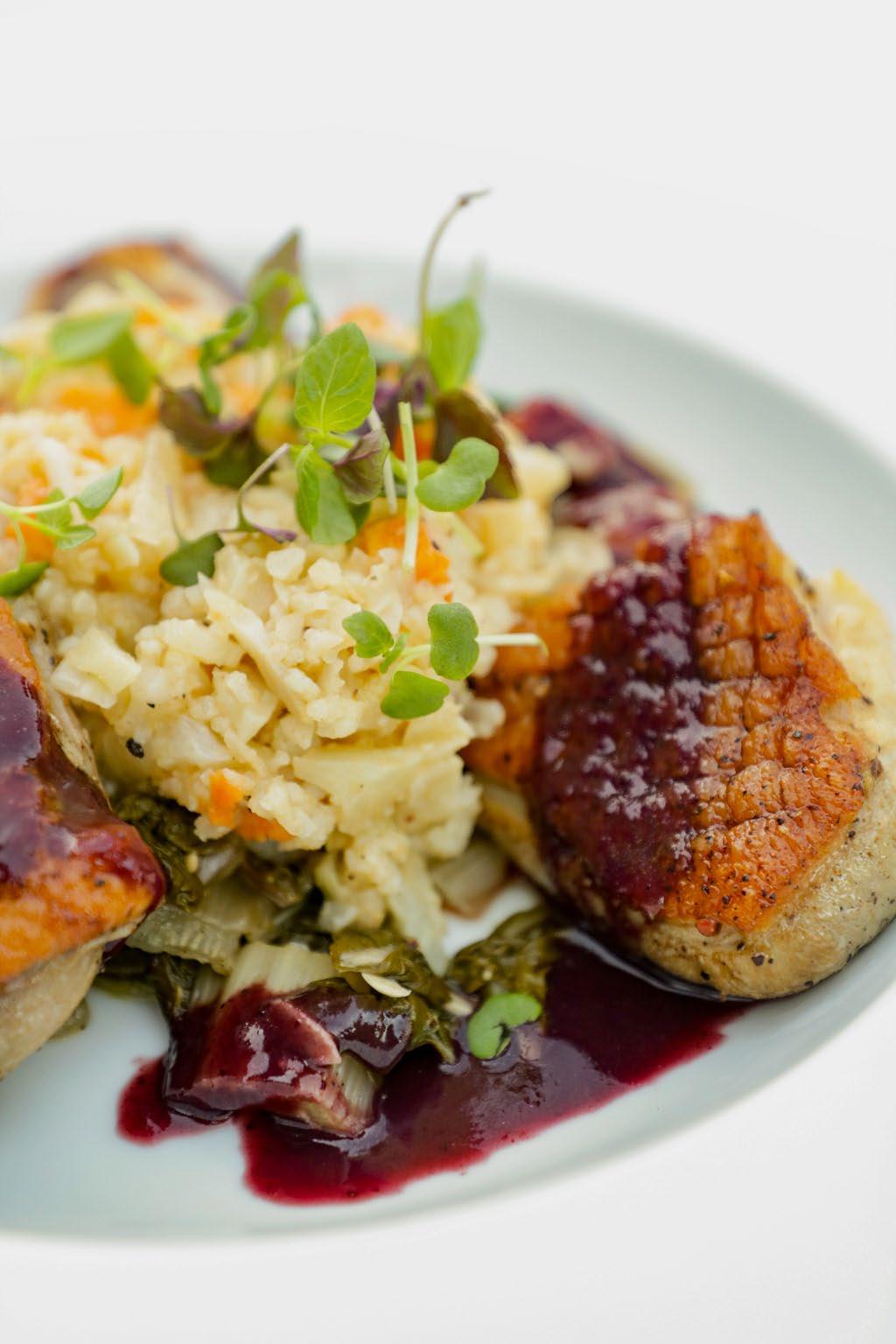 Sumac-Roasted Chicken Breast with braised fennel, tomato, and artichoke