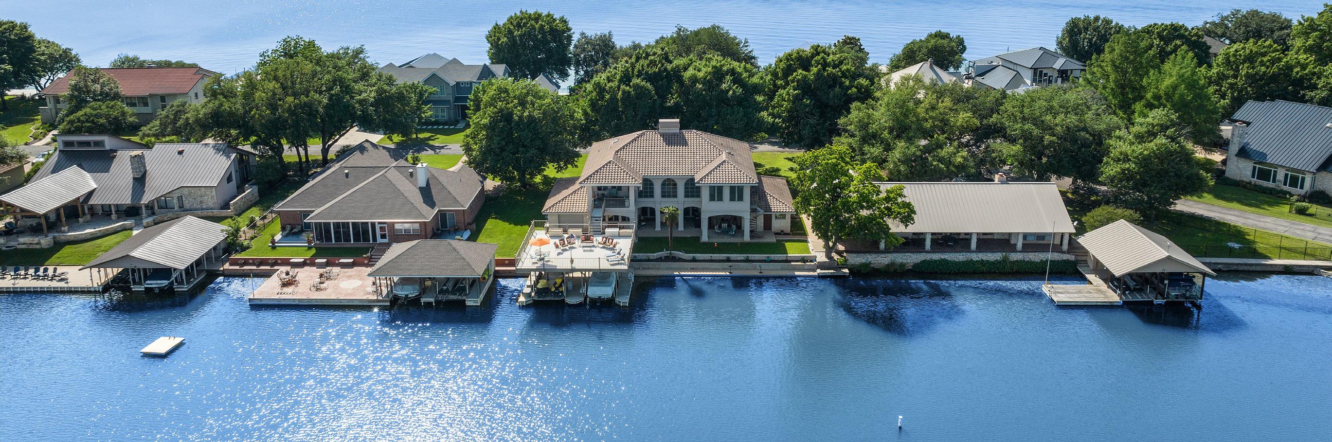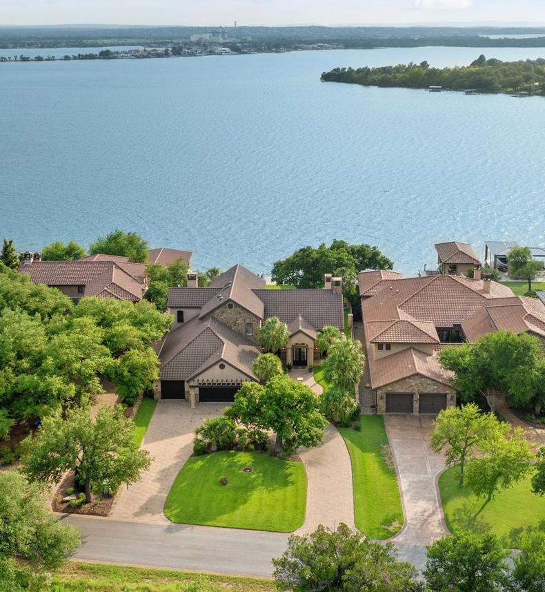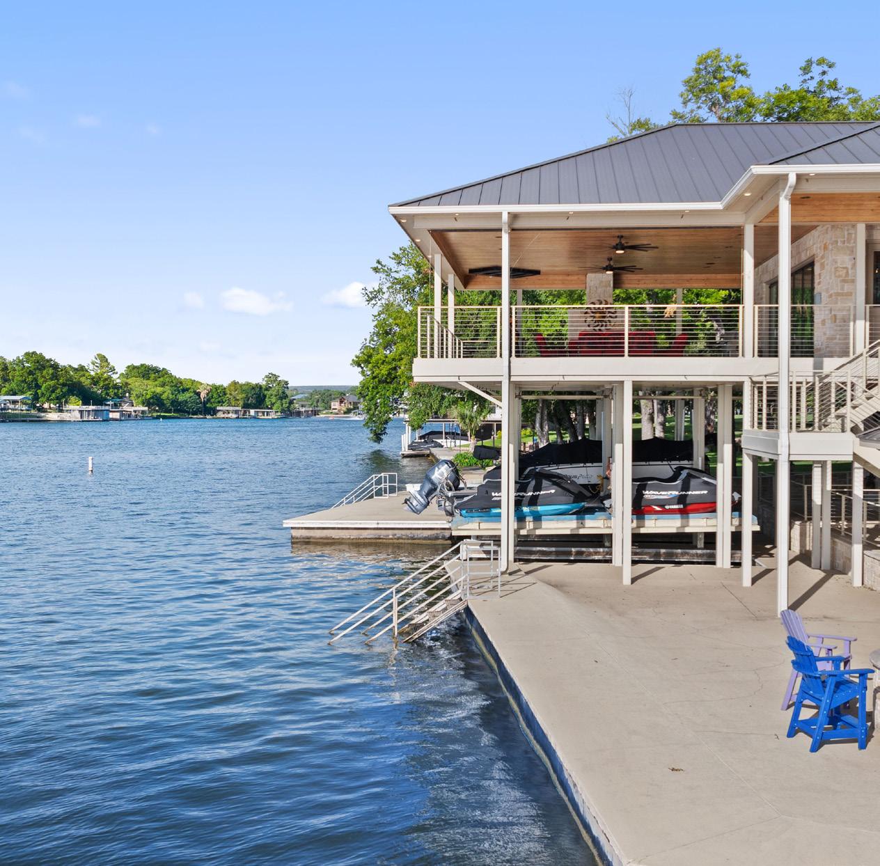Discover the epitome of Lake LBJ waterfront luxury! This 3.3-acre estate in the gated golf & waterfront community of The Legends offers 250’ feet of breathtaking open waterfront. It features a stunning blue negative-edge pool with a spa and slide, a spacious covered patio, and an extraordinary man cave with a full bar, pool table, and ice cream station. The multi-generational design includes an open-concept main living area, a gourmet kitchen, a theater room, a primary suite with a spa bath, and multiple guest suites. The beautifully landscaped grounds lead to lakeside entertaining areas, a summer kitchen with a BBQ/fire pit, and a boathouse with living quarters and amenities. Constructed in 2020, this 9,788 sq ft estate includes eight bedrooms, nine full baths, two half baths, a five-car garage, offered fully furnished with watercraft, ready to start living your best life on Lake LBJ!